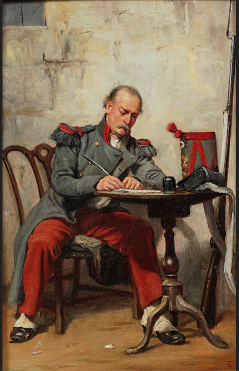 Thomas Davidson (British, 1842-1919) A Guard in a Reflective Interlude Davidson was a historical and genre painter who exhibited widely, including at the Birmingham Royal Society of Artists, Glasgow Institute of Fine Arts, Royal Society of British Artists, Royal Hibernian Academy, and the Royal Institute of Art Painters. The guard is wearing a uniform from the time of King Louis Philippe I of France, who ruled from 1830 to 1848, and who is considered by some to be the penultimate monarch of France. |