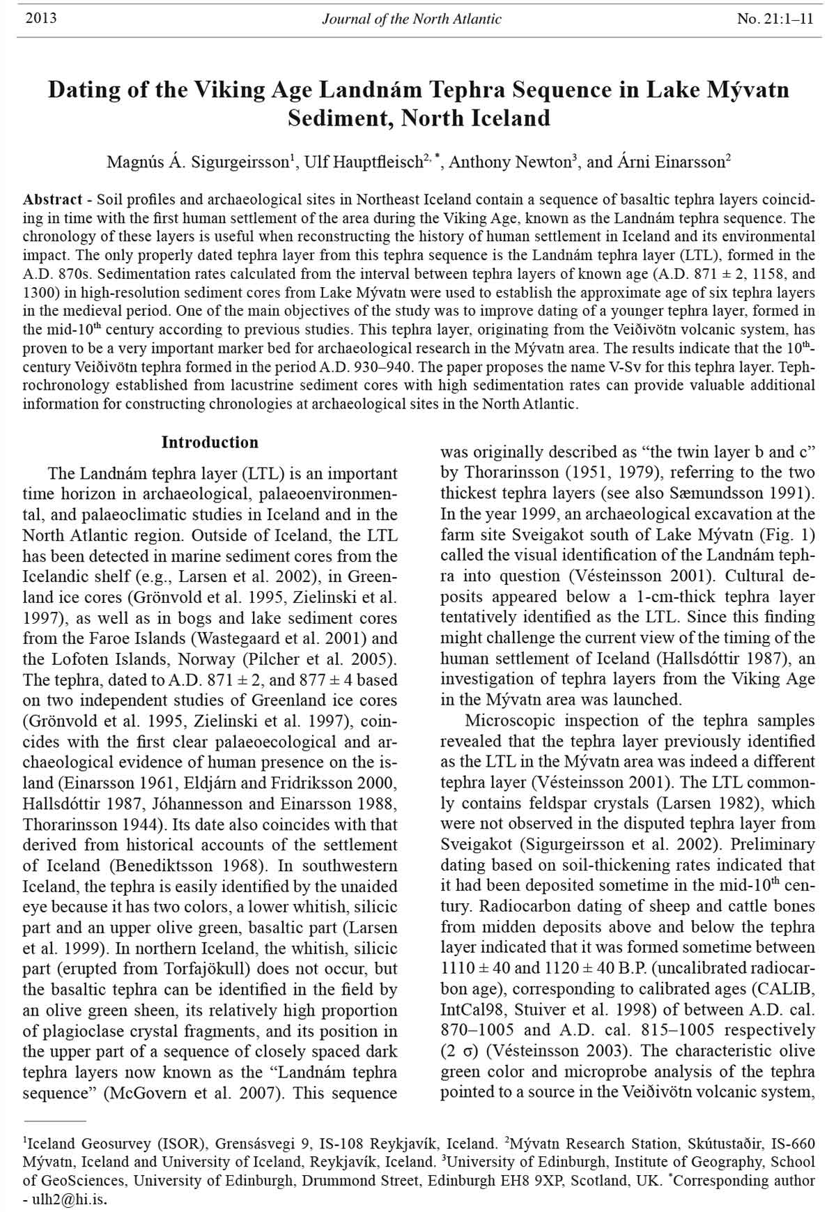 impact. The only properly dated tephra layer from this tephra sequence is the Landnám tephra layer (LTL), formed in the