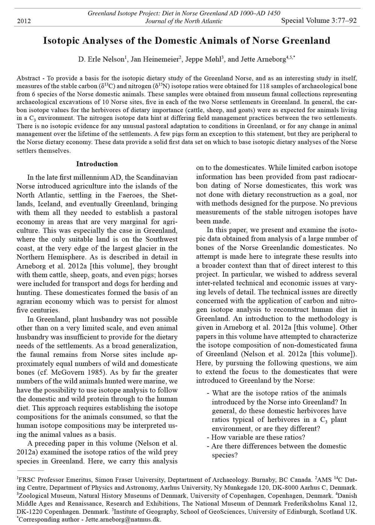 Isotopic Analyses of the Domestic Animals of Norse Greenland
