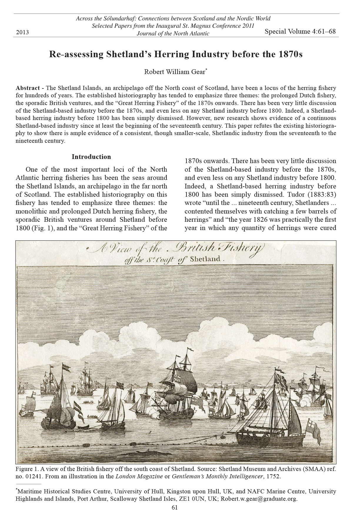 Abstract - The Shetland Islands, an archipelago off the North coast of Scotland, have been a locus of the herring fishery