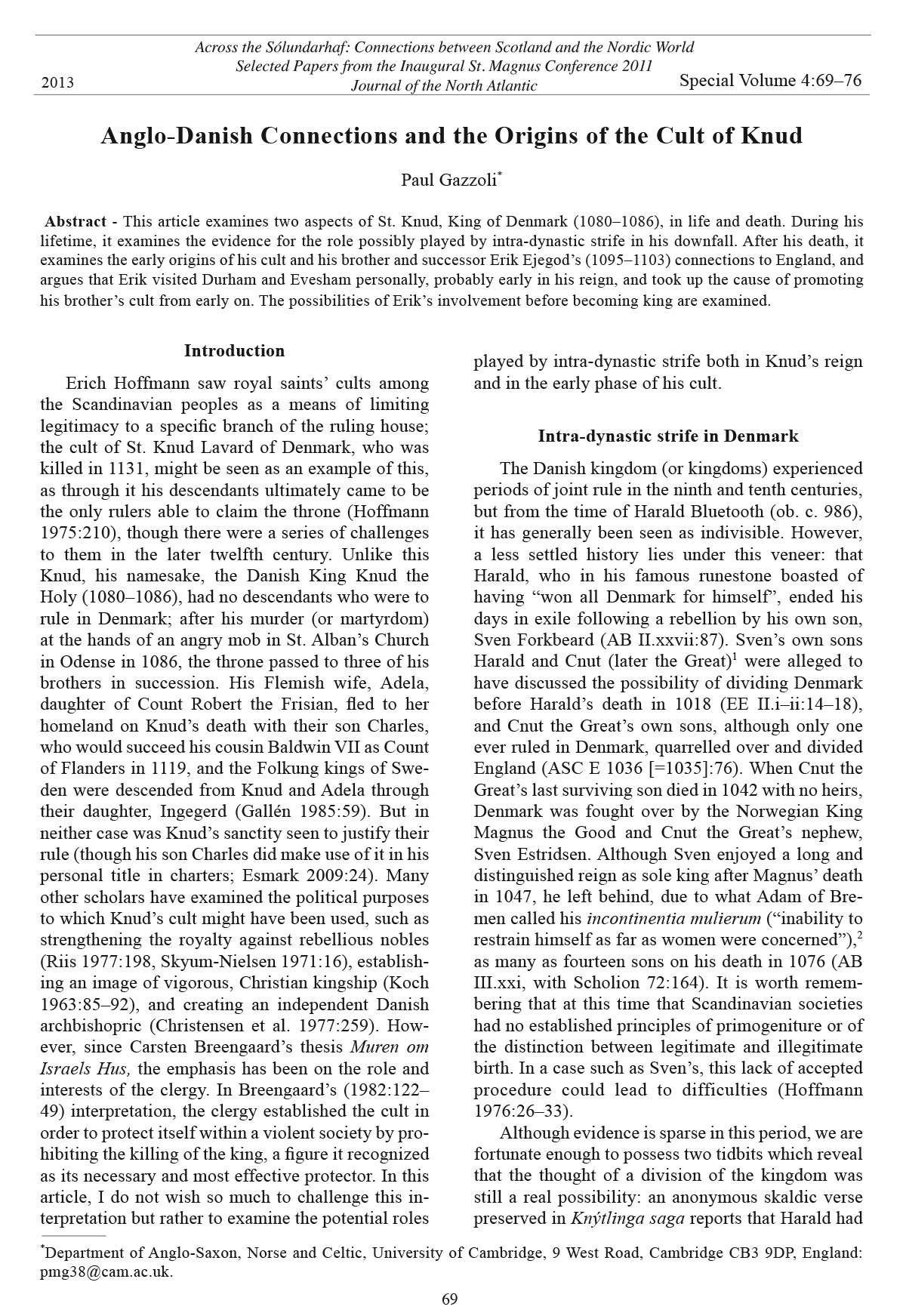 examines the early origins of his cult and his brother and successor Erik Ejegod’s (1095–1103) connections to England, and