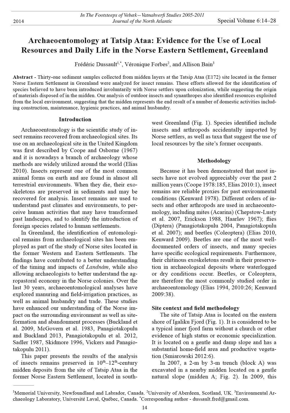 1Memorial University, Newfoundland and Labrador, Canada. 2University of Aberdeen, Scotland, UK. 3Environmental Archaeology