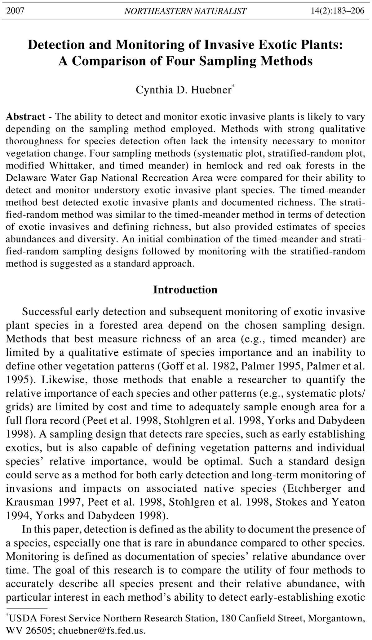 detect and monitor understory exotic invasive plant species. The timed-meander