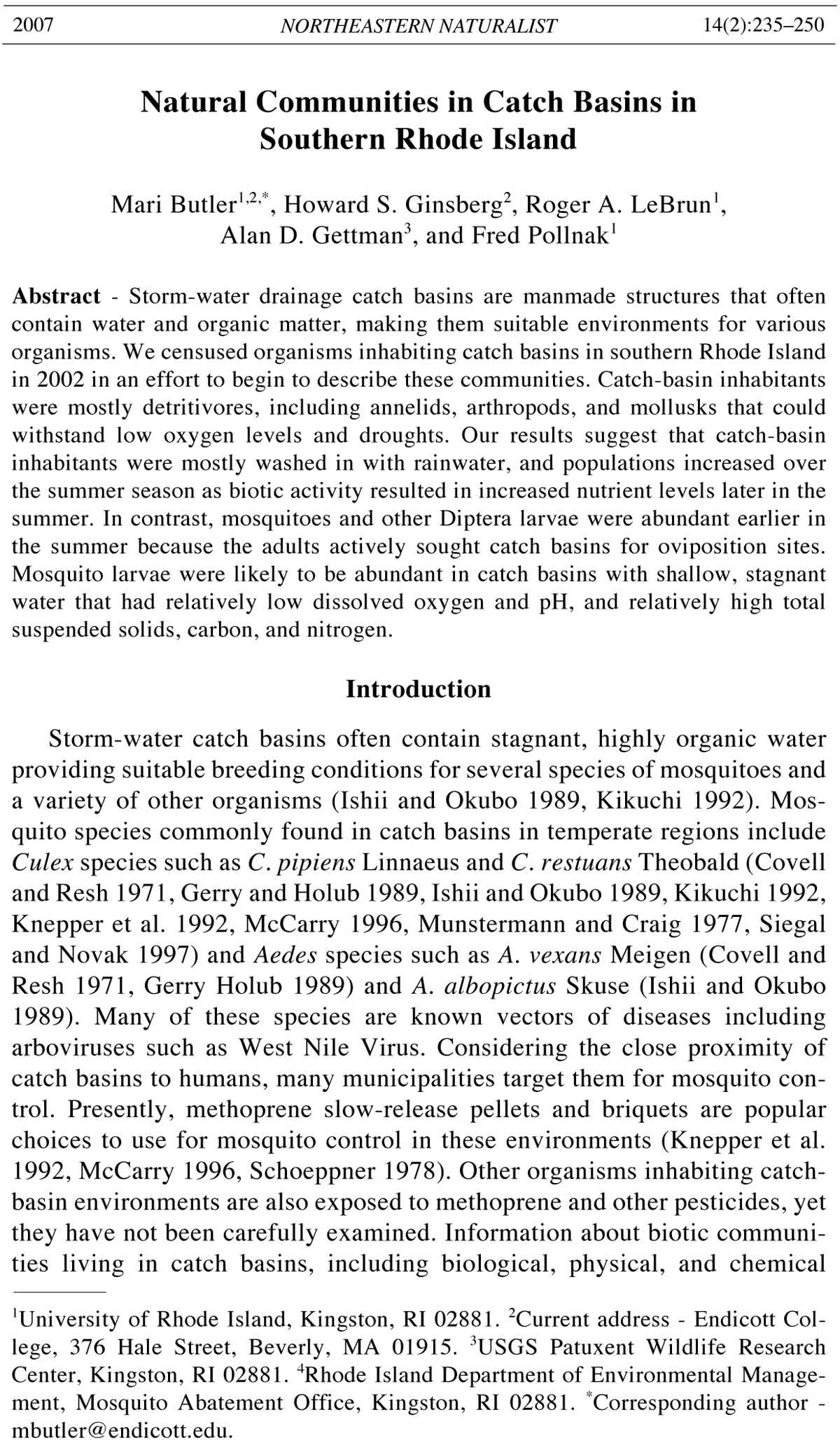 Mosquito Abatement Office, Kingston, RI 02881. *Corresponding author -