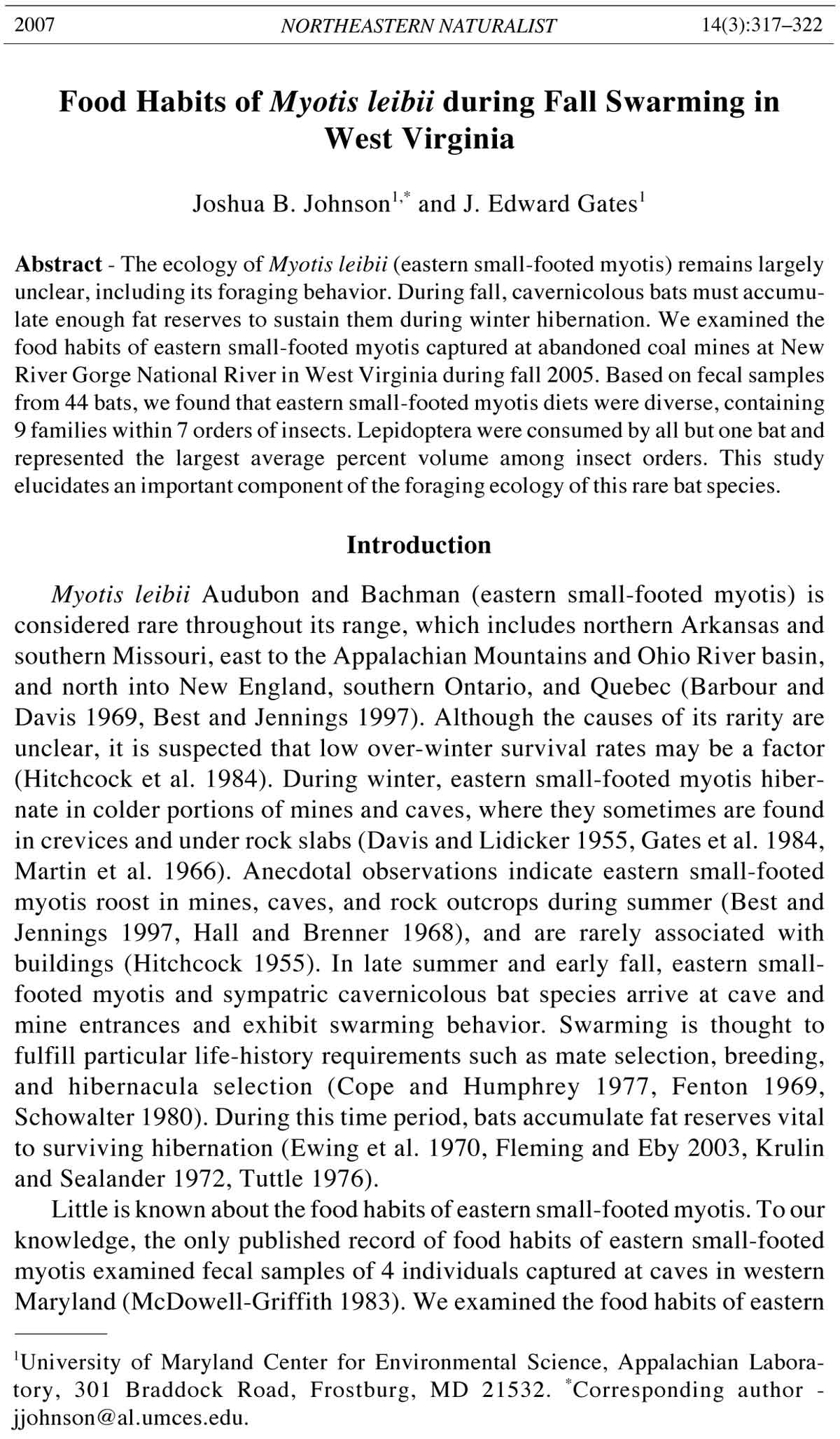 bat food-habits study in West Virginia (Carter et al. 2003). We calculated