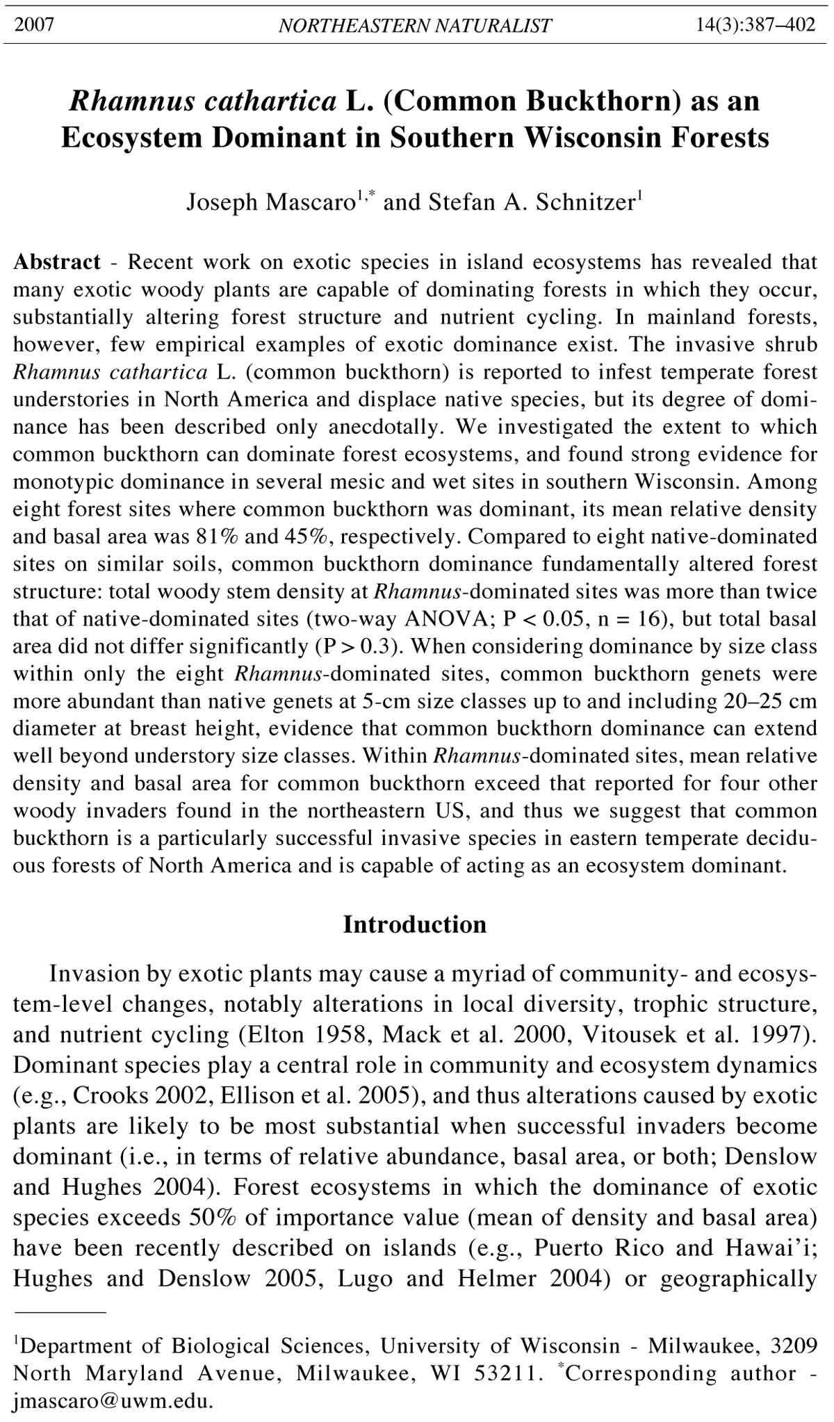 however, few empirical examples of exotic dominance exist. The invasive shrub