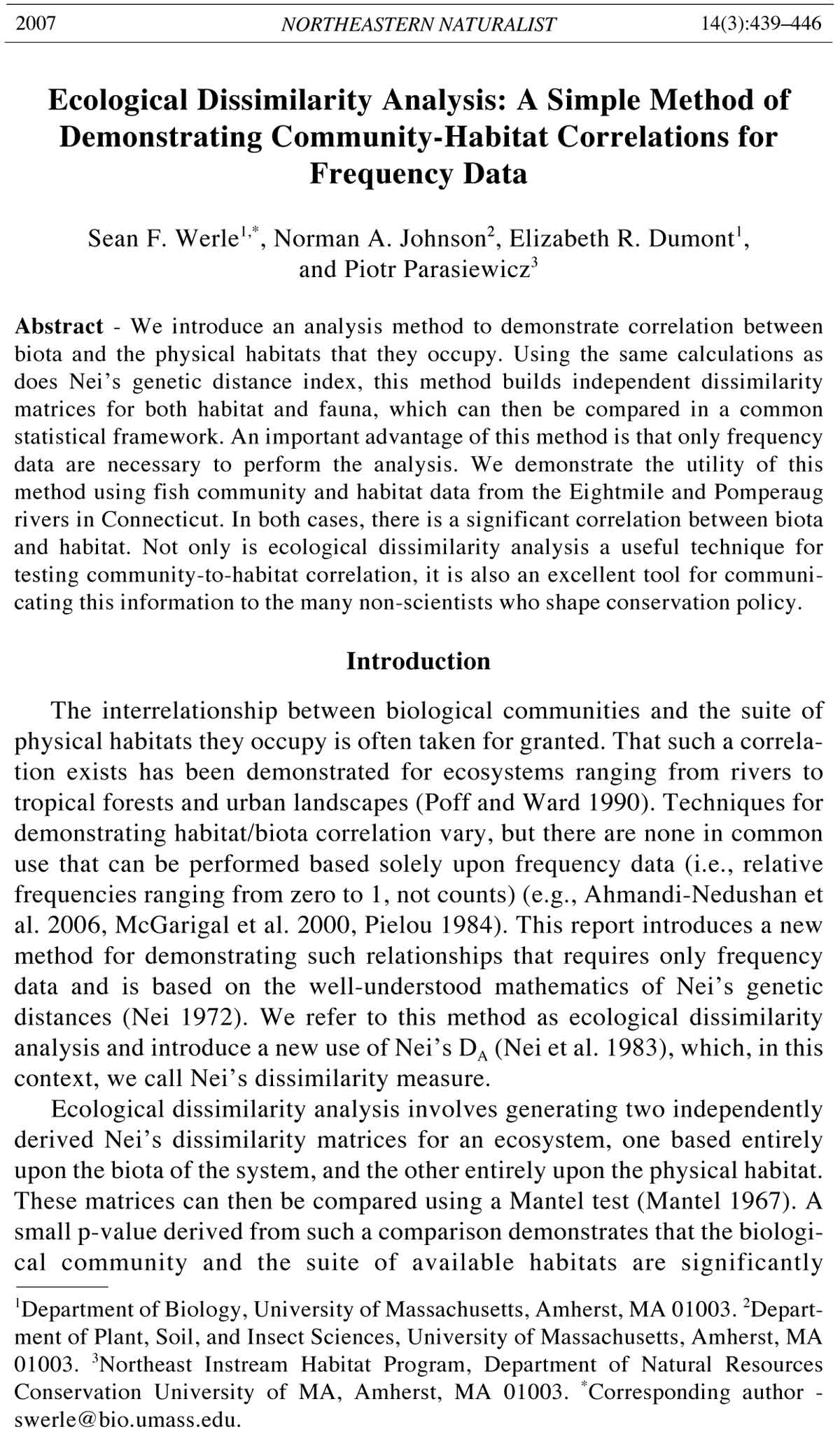 2007 S.F. Werle, N.A. Johnson, E.R. Dumont, and P. Parasiewicz 441