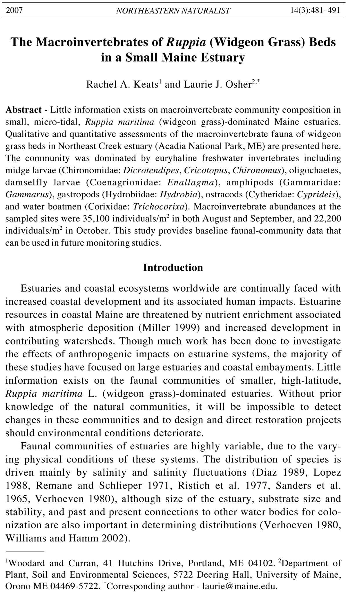 southern Maine salt marsh. American Midland Naturalist 153:257–269.
