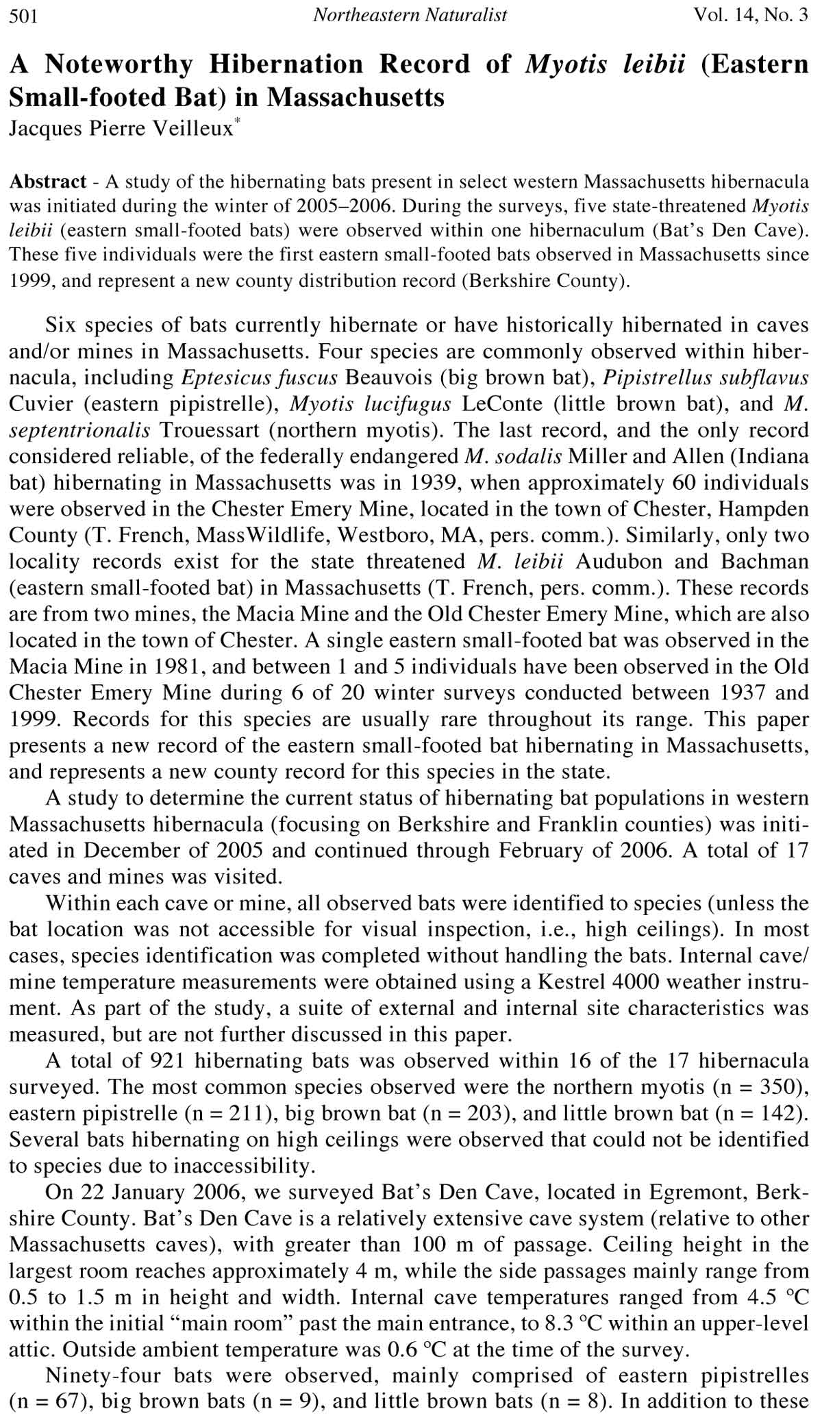 (eastern small-footed bat) in Massachusetts (T. French, pers. comm.). These records