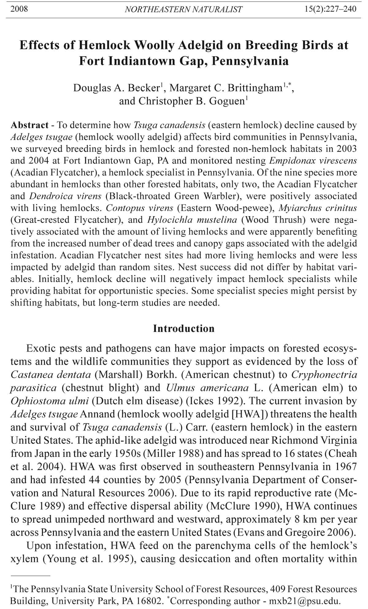 Northeastern Naturalist, Volume 15, Issue 2 (2008): 227–240