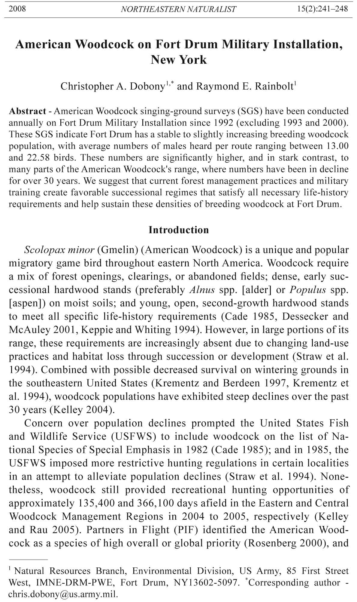 requirements and help sustain these densities of breeding woodcock at Fort Drum.