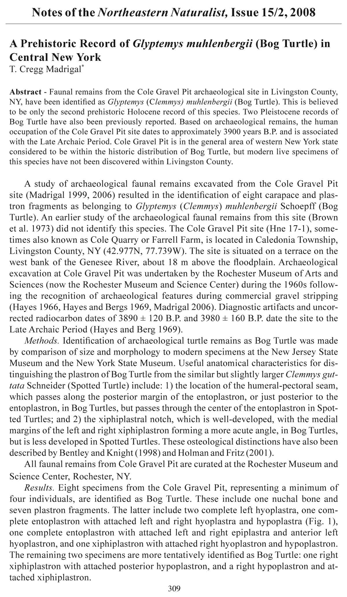 Madrigal, T.C. 2006. Late Archaic animal bones from the Cole Gravel Pit Site, Livingston