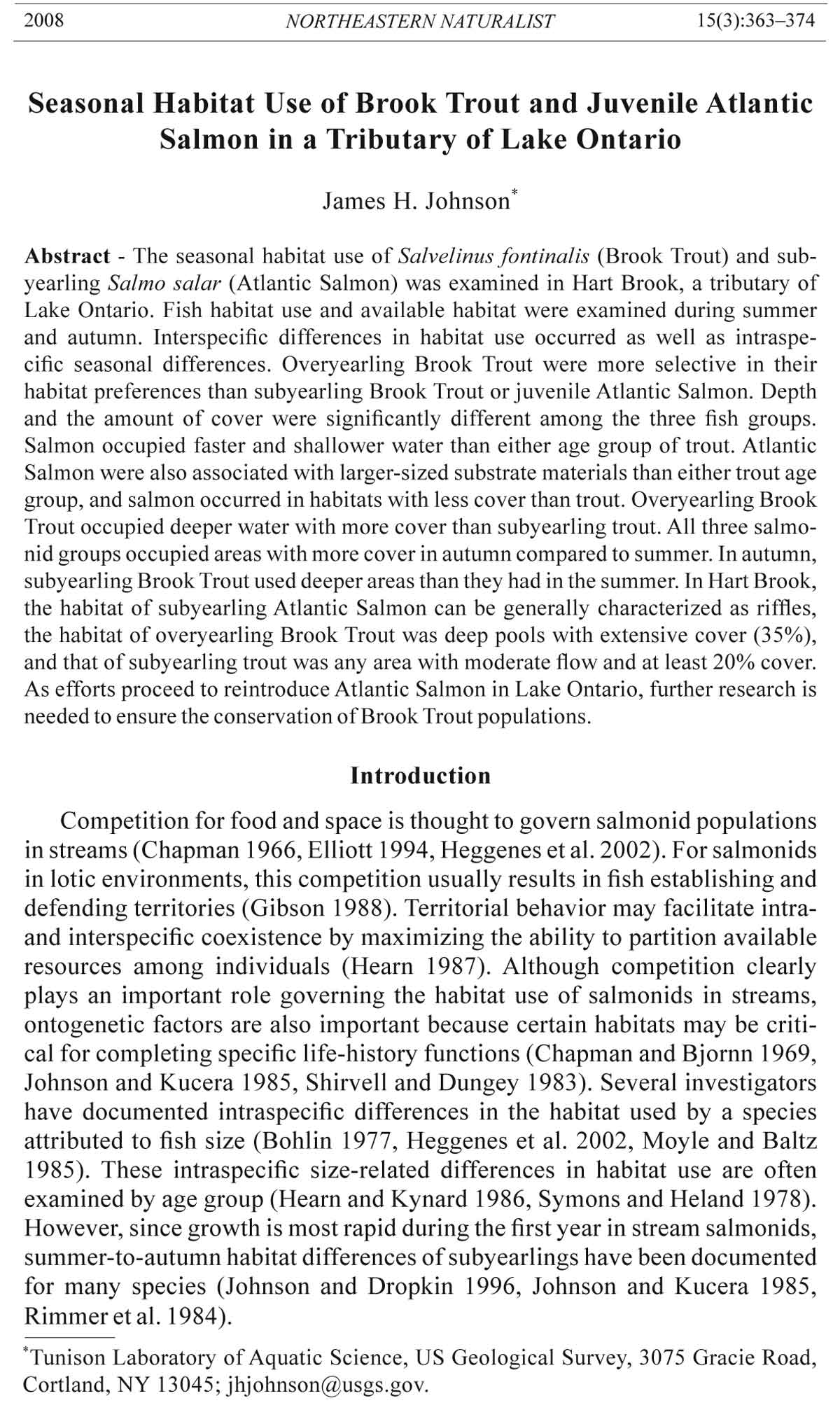 Cortland, NY 13045; jhjohnson@usgs.gov.