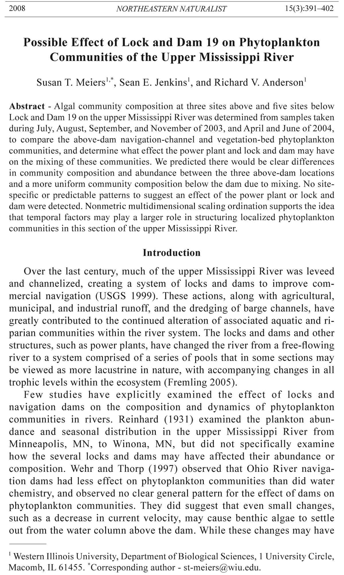 Engman, J.A. 1984. Phytoplankton distribution in pool 19, Mississippi River. M.Sc.