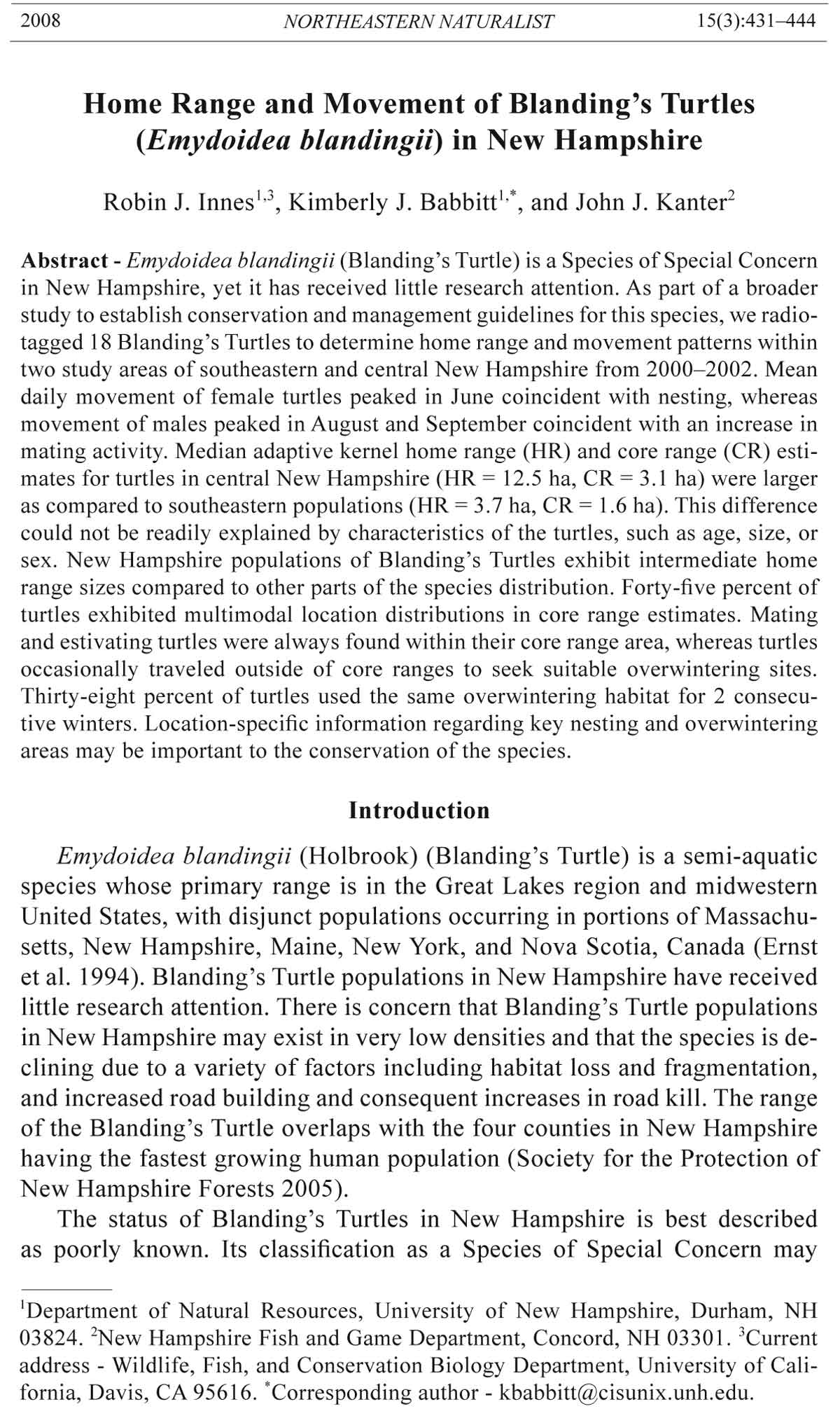 Davis, CA 95616. *Corresponding author - kbabbitt@cisunix.unh.edu.