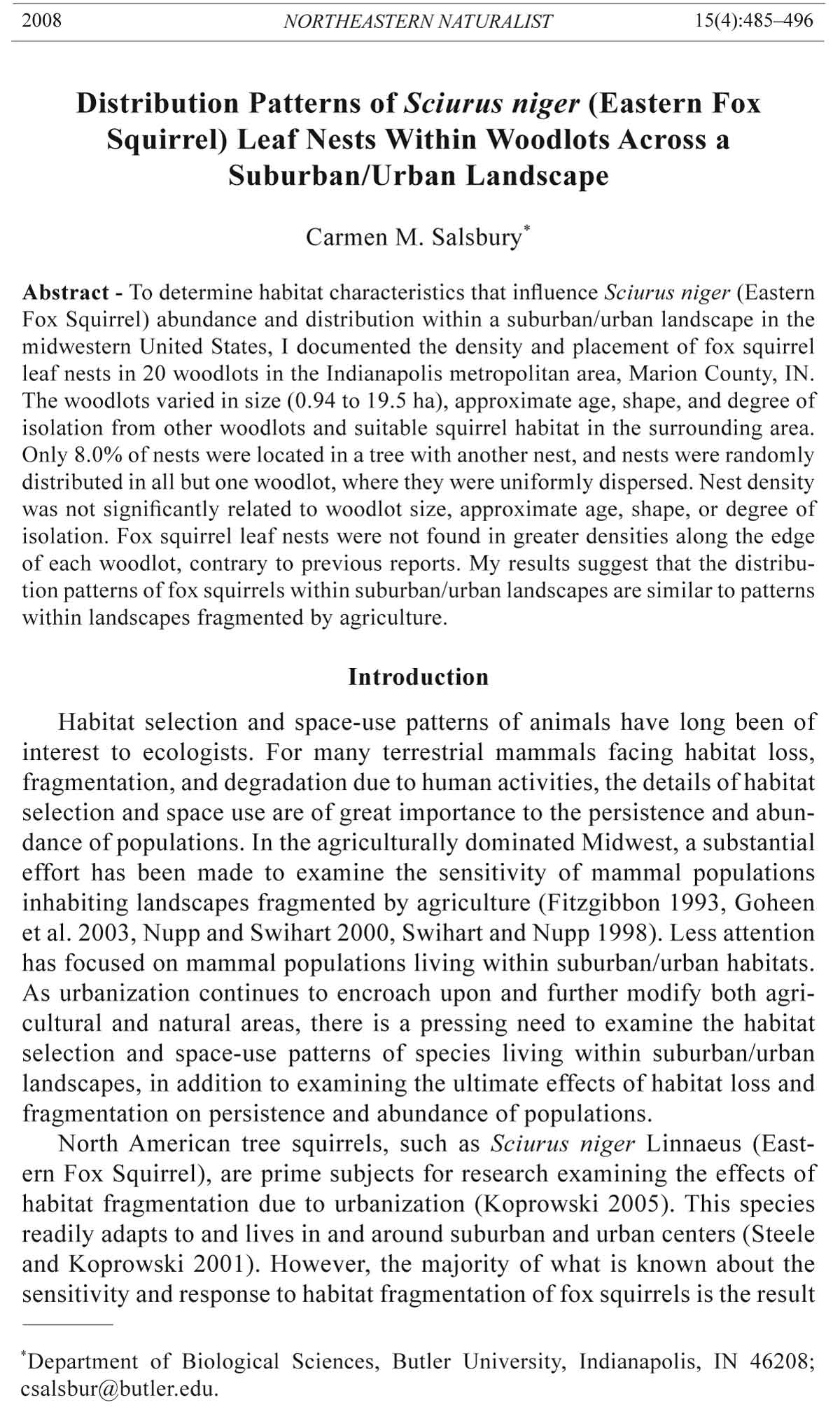 fragmented landscape in west-central Indiana (Goheen et al. 2003). Yet in