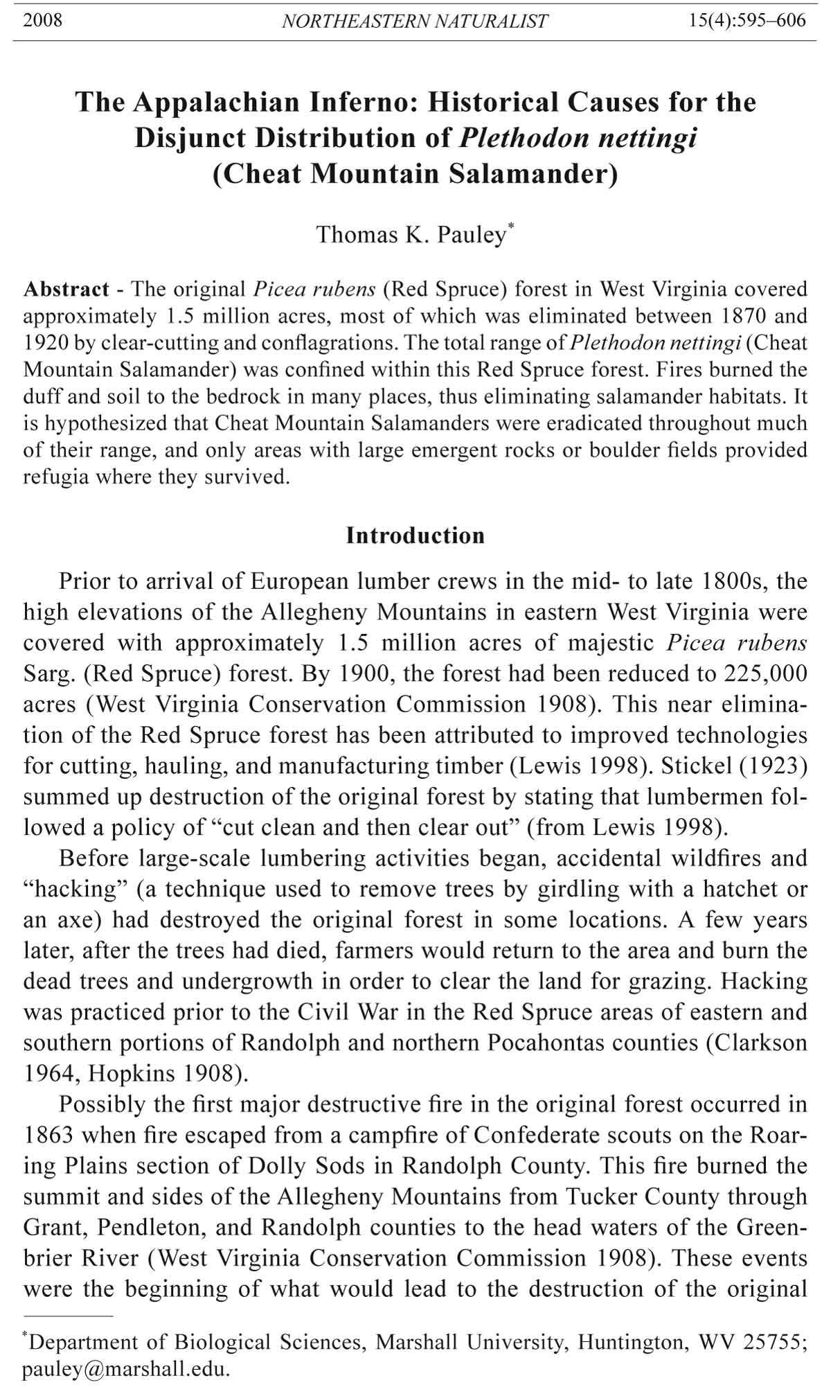 Pauley, T.K. 2007. Revised notes on the range of the Cheat Mountain Salamander,