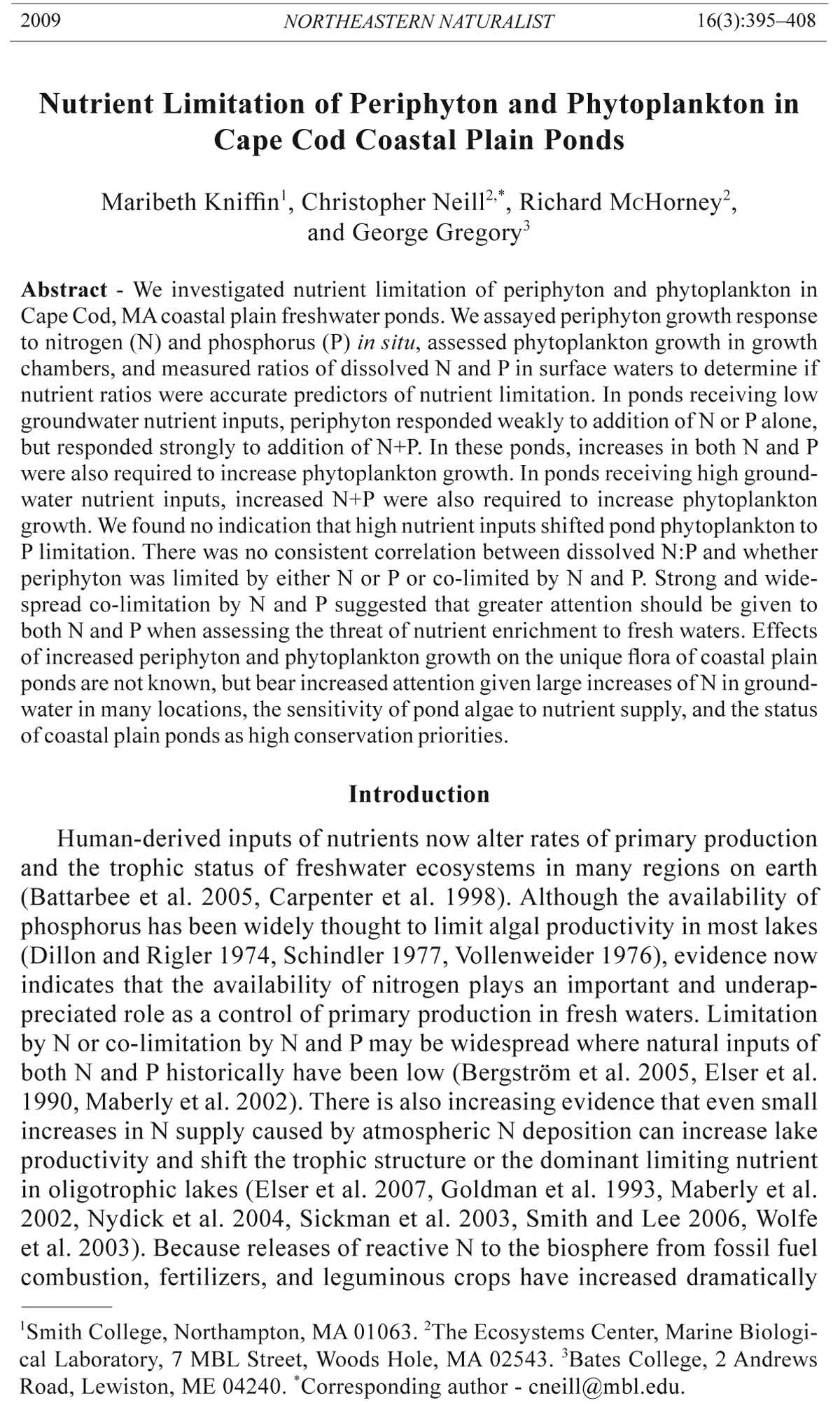 Laboratory, 7 MBL Street, Woods Hole, MA 02543. 3Bates College, 2 Andrews