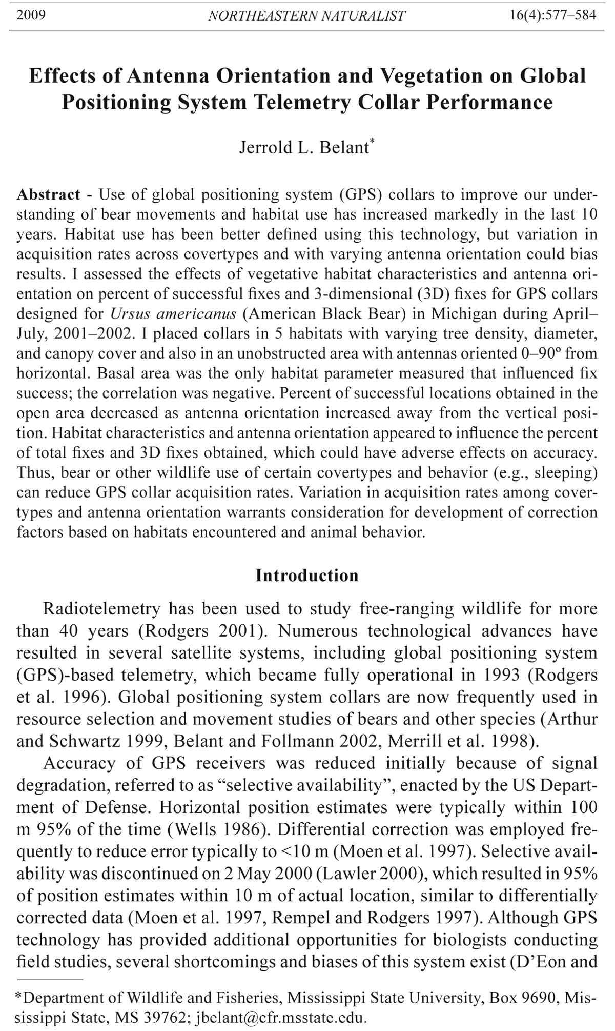 to reduce error typically to less than 10 m (Moen et al. 1997). Selective availability