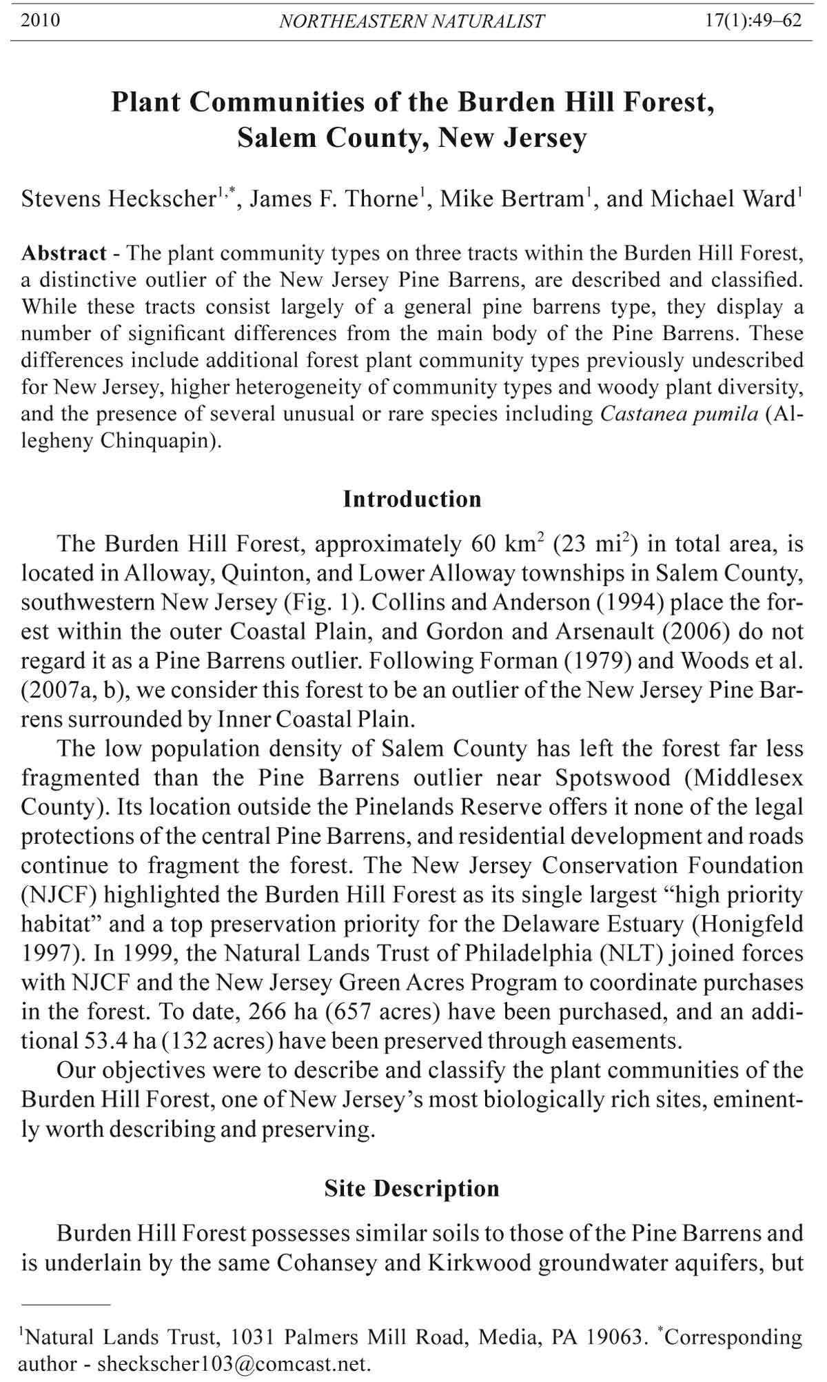 (2007a, b), we consider this forest to be an outlier of the New Jersey Pine Barrens