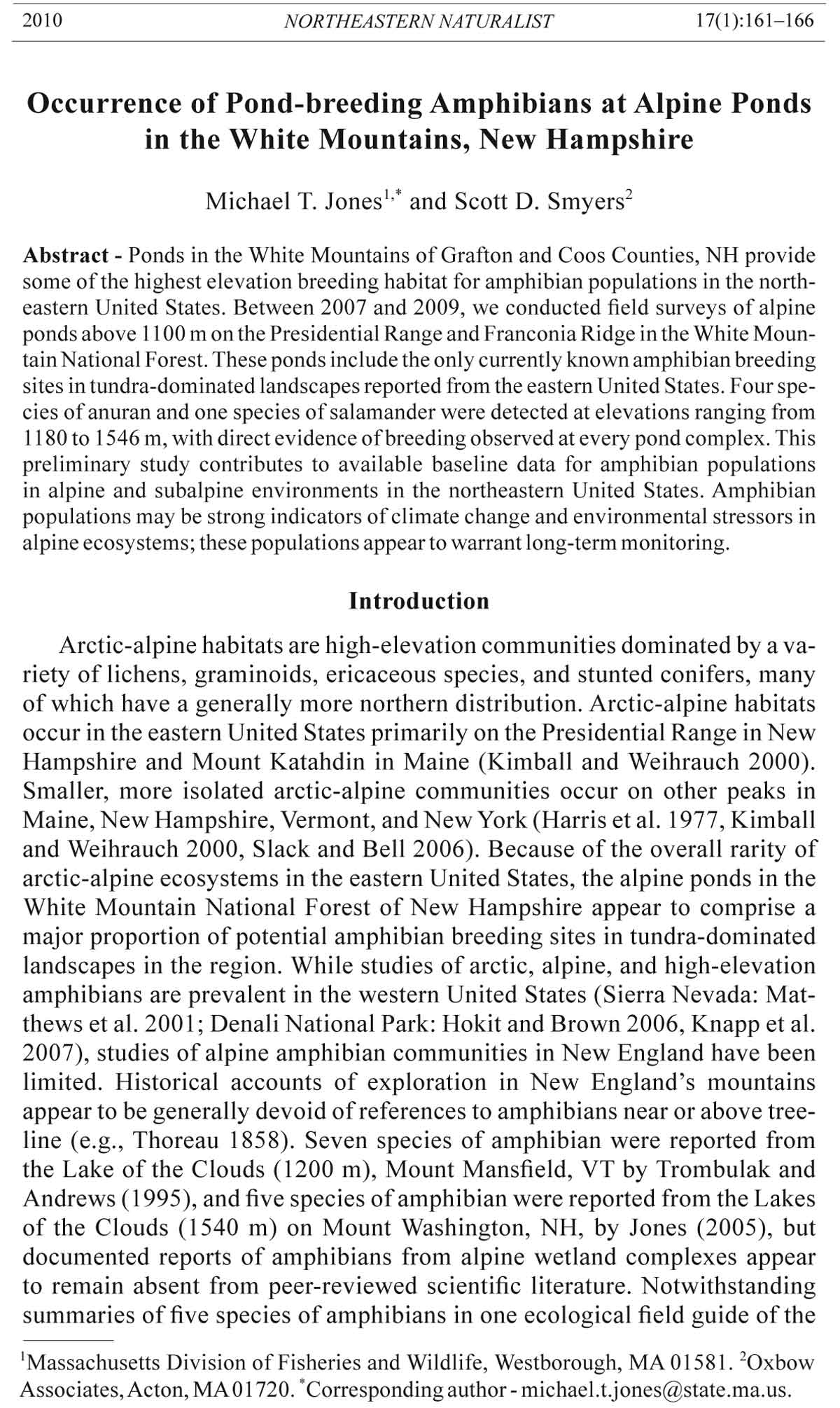 Associates, Acton, MA 01720. *Corresponding author - michael.t.jones@state.ma.us.