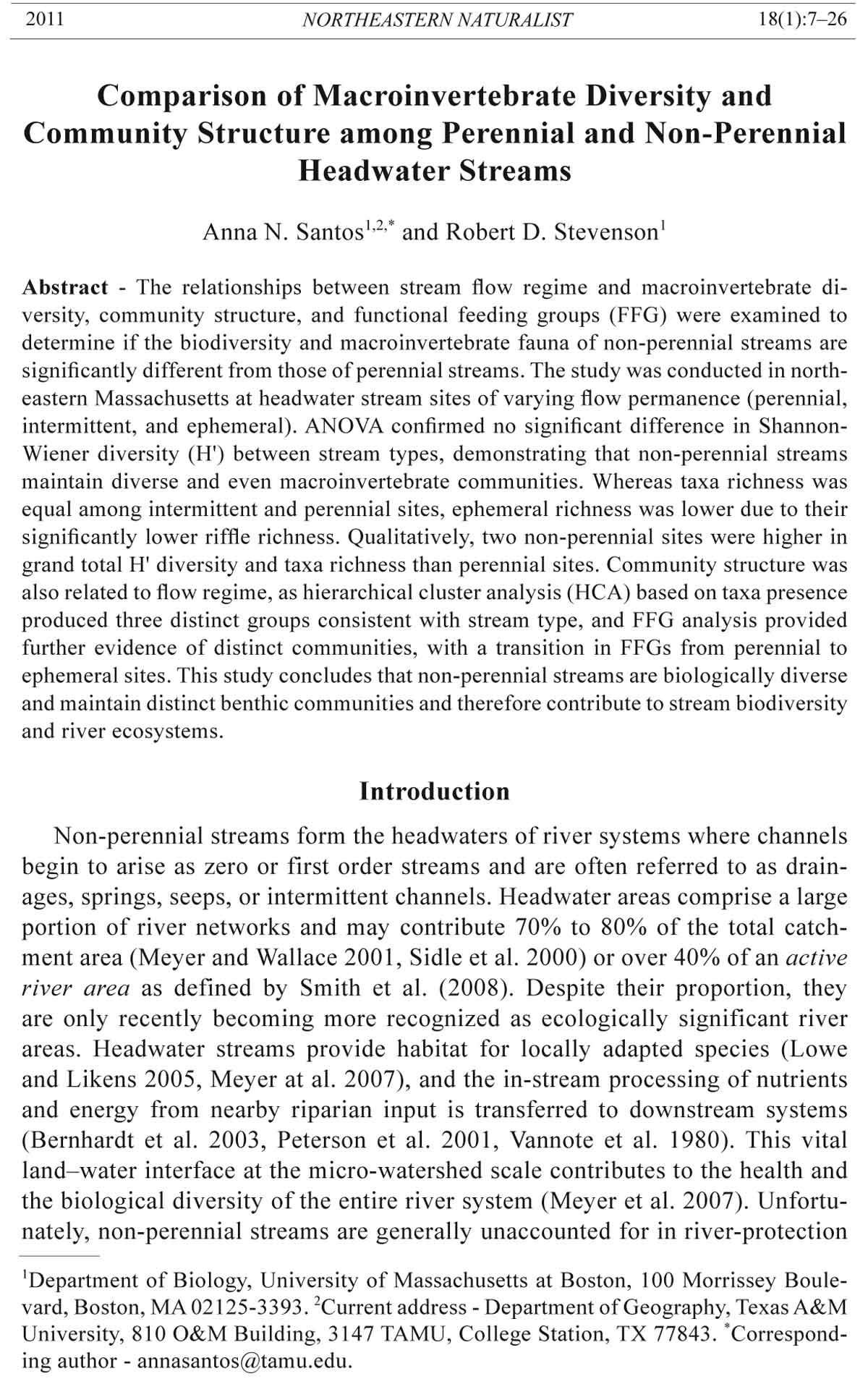 Abstract - The relationships between stream flow regime and macroinvertebrate diversity,