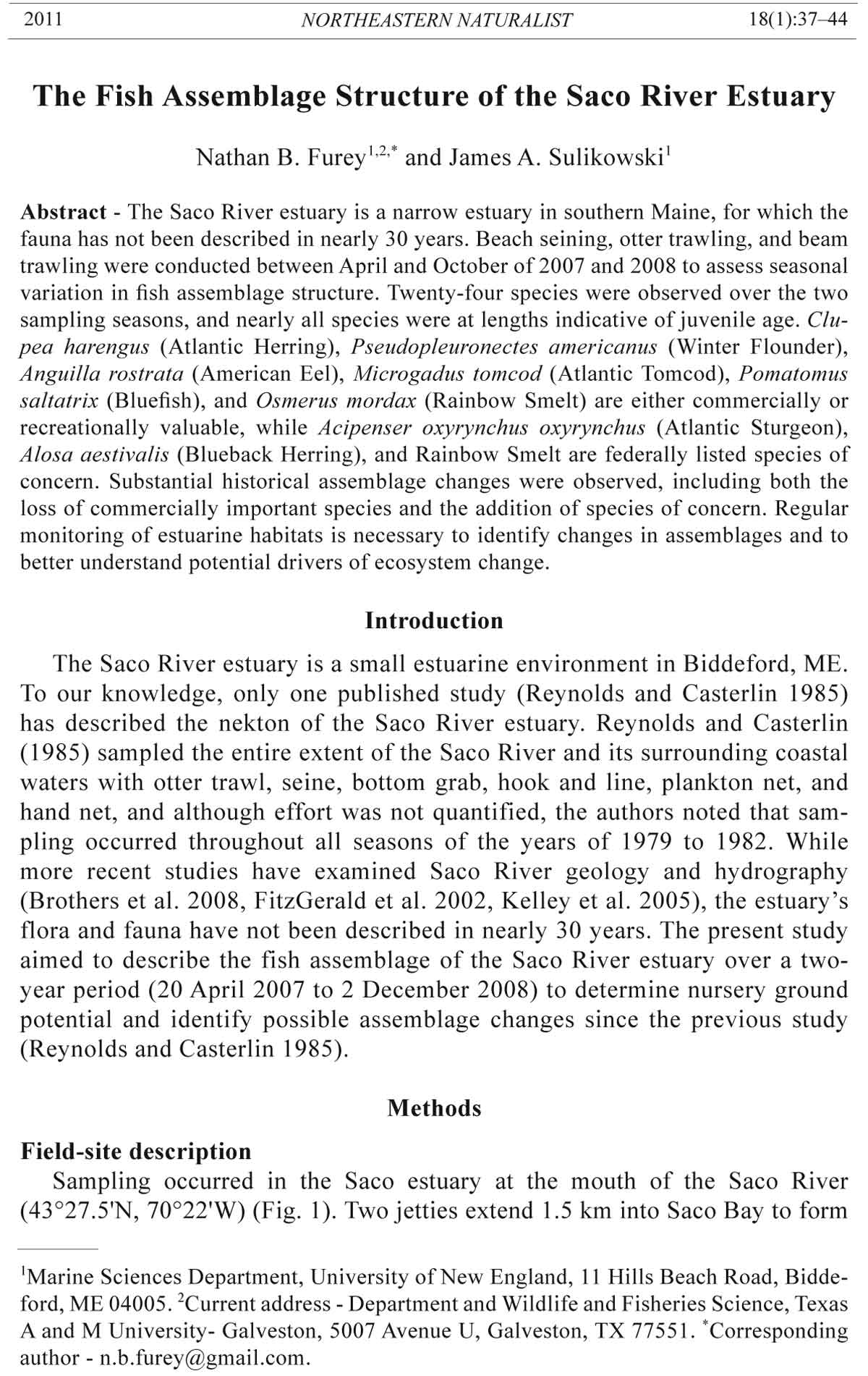 aimed to describe the fish assemblage of the Saco River estuary over a twoyear