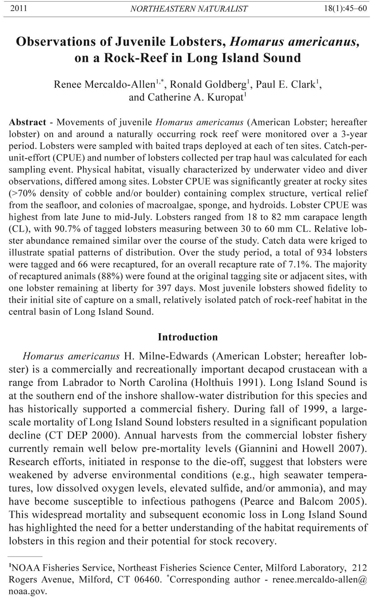 2011 R. Mercaldo-Allen, R. Goldberg, P.E. Clark, and C.A. Kuropat 59