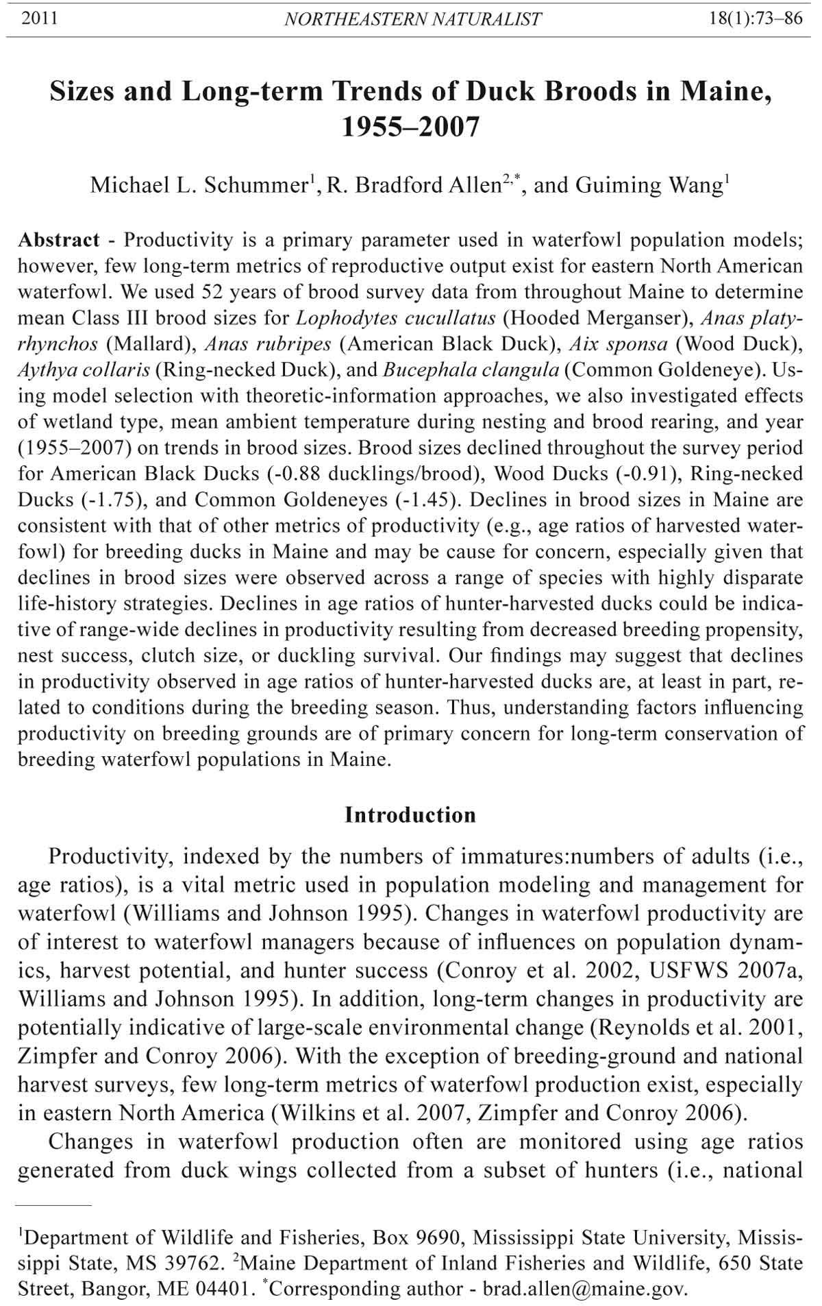 waterfowl. We used 52 years of brood survey data from throughout Maine to determine