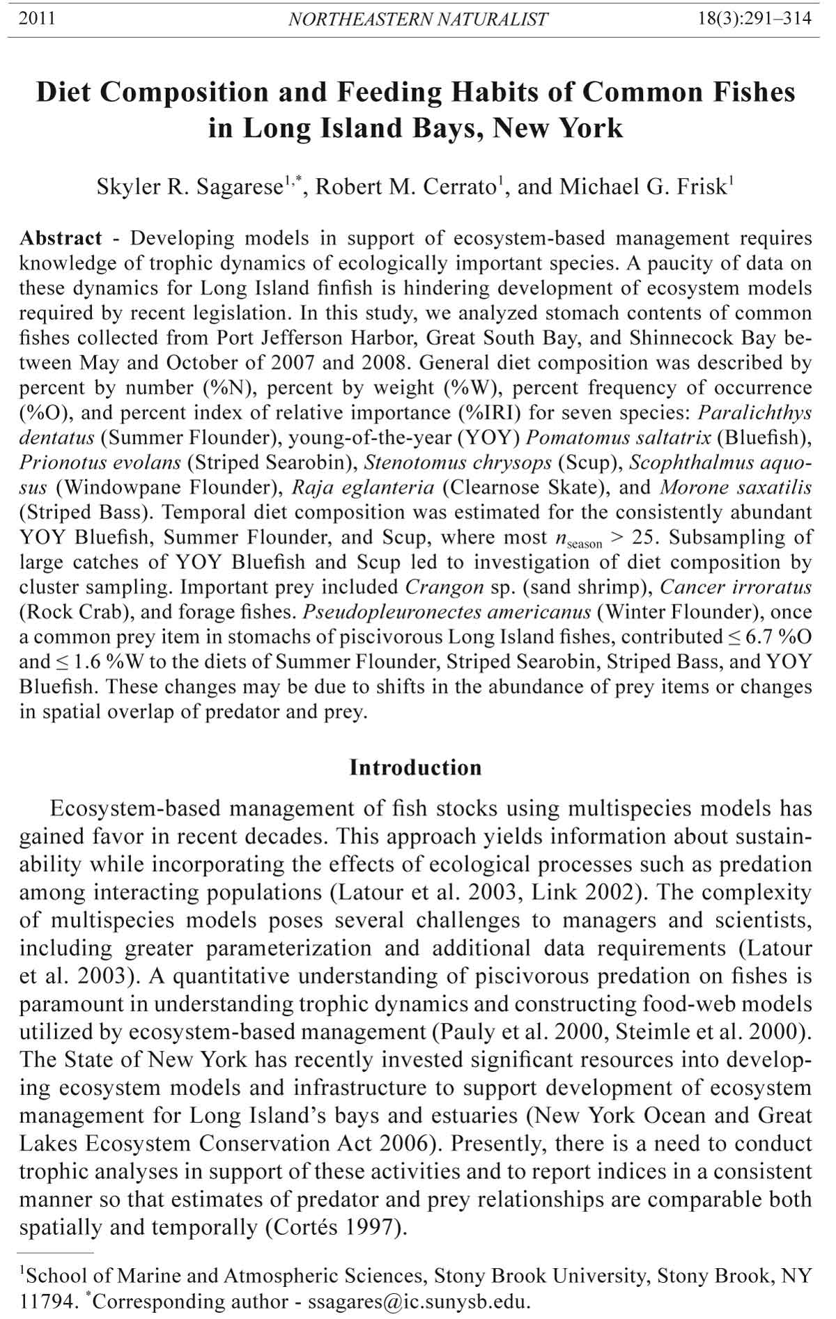 2011 S.R. Sagarese, R.M. Cerrato, and M.G. Frisk 293