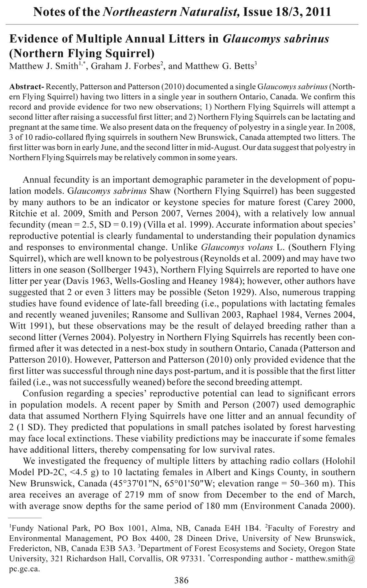 Patterson, J.E.H., and S.J. Patterson. 2010. Multiple annual litters in Glaucomys sabrinus (Northern