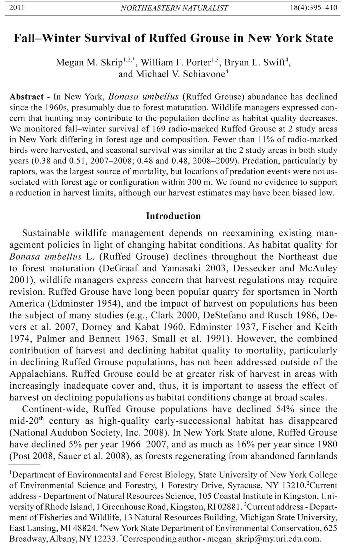(National Audubon Society, Inc. 2008). In New York State alone, Ruffed Grouse