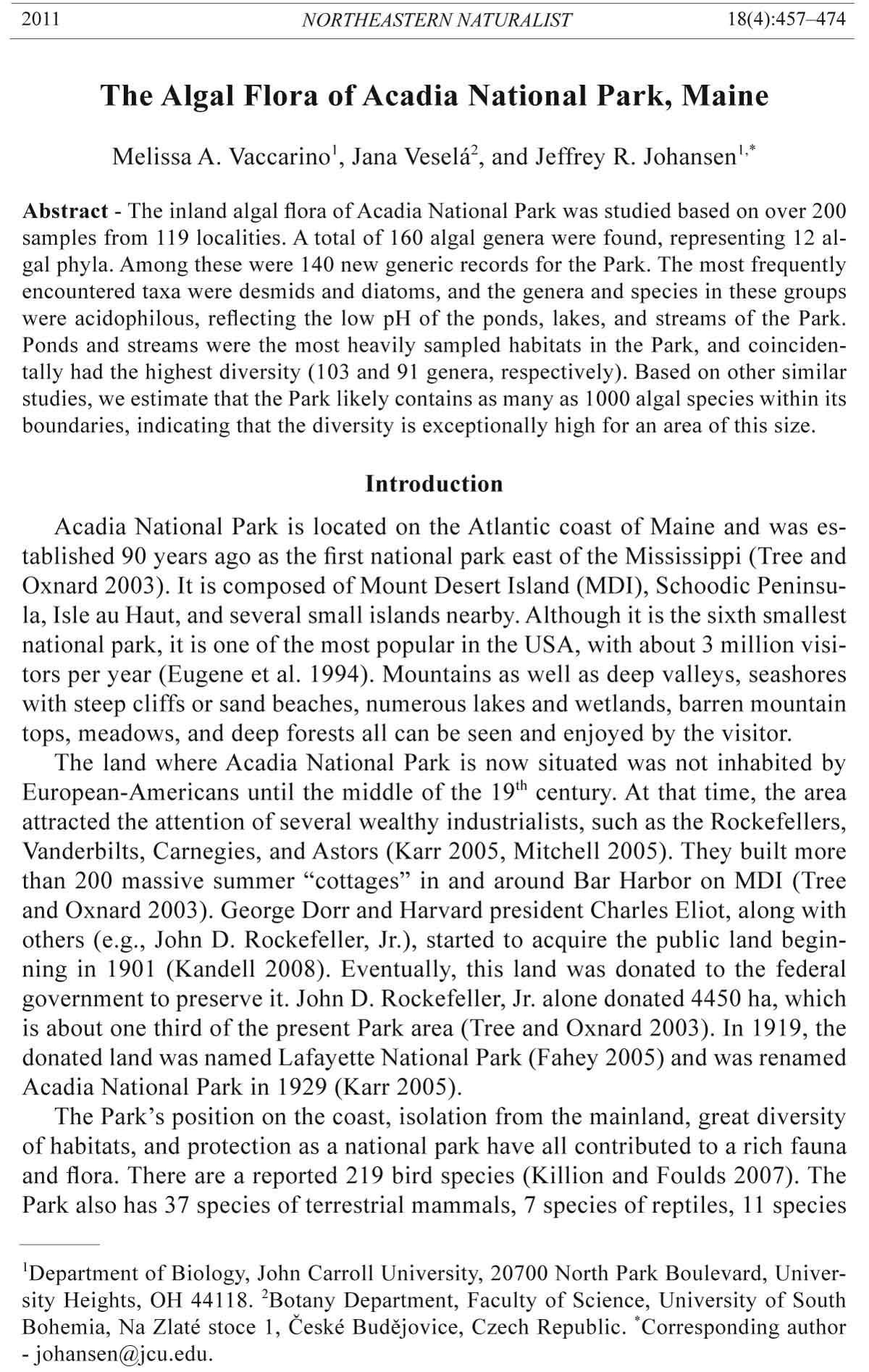 2011 NORTHEASTERN NATURALIST 18(4):457–474