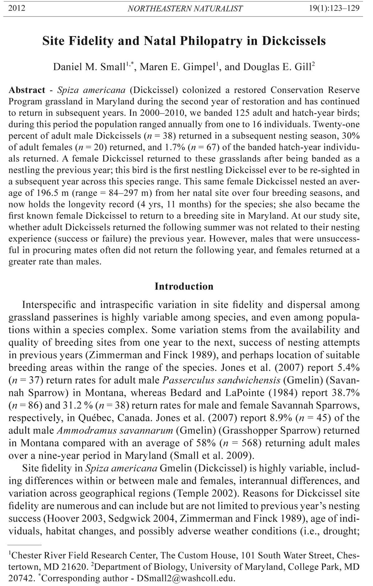 Daniel M. Small1,*, Maren E. Gimpel1, and Douglas E. Gill2