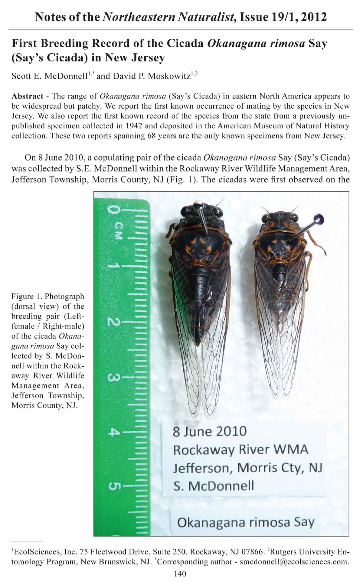 not a part of our fauna” (NJSM 1909). An early review of the cicada fauna of the state
