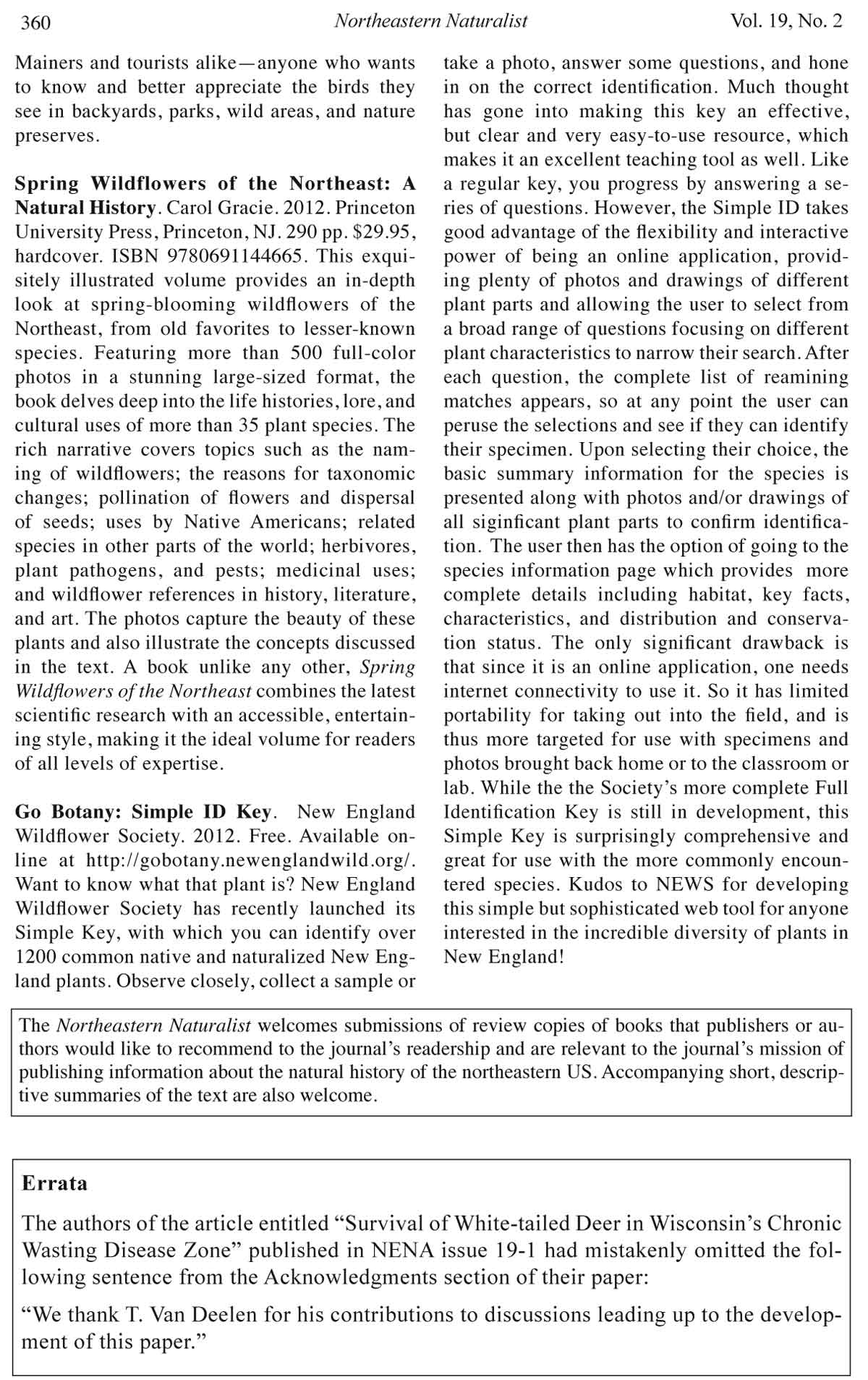 Northeastern Naturalist, Volume 19, Issue 2 (2012): 360