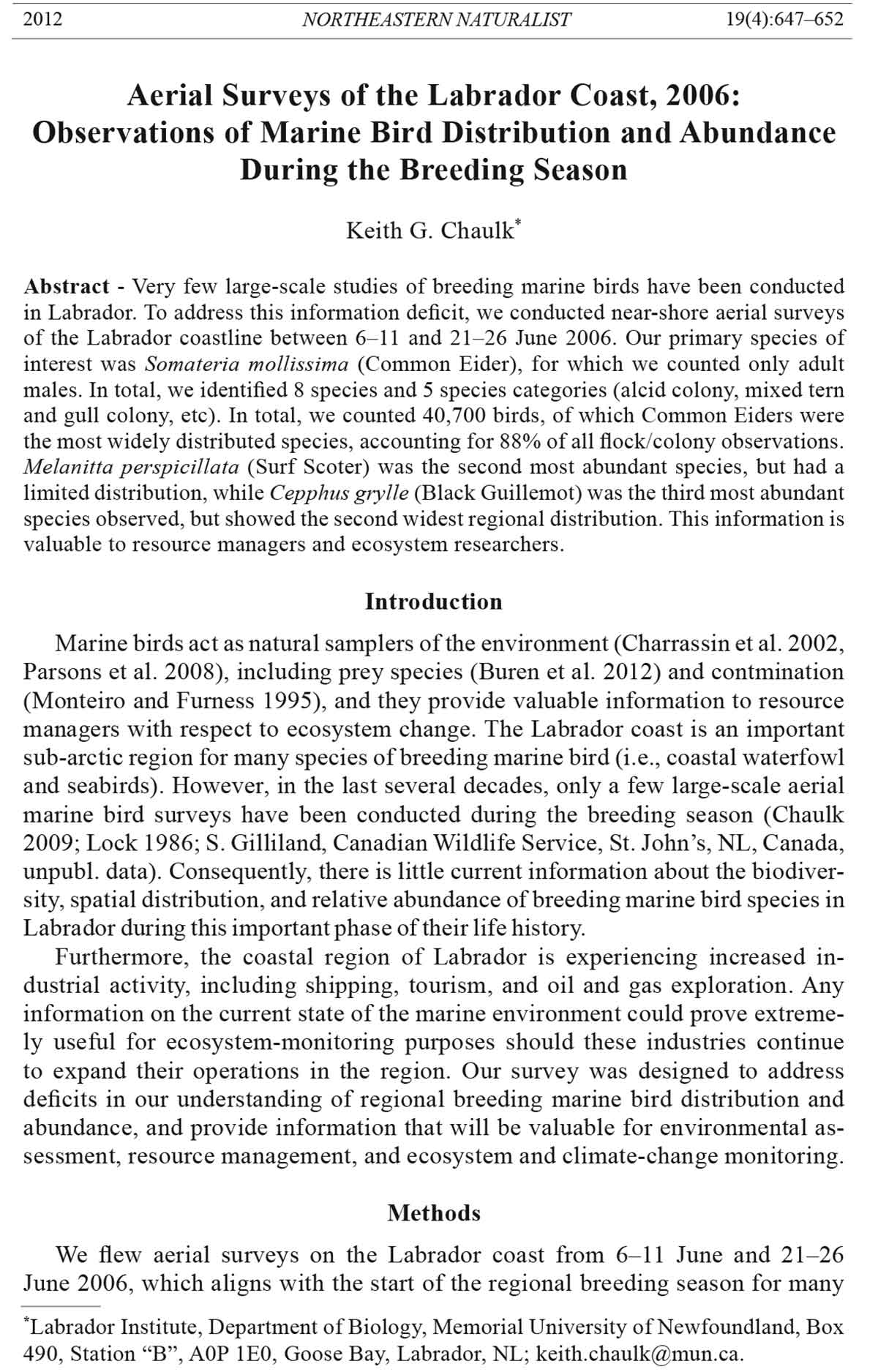 490, Station “B”, A0P 1E0, Goose Bay, Labrador, NL; keith.chaulk@mun.ca.