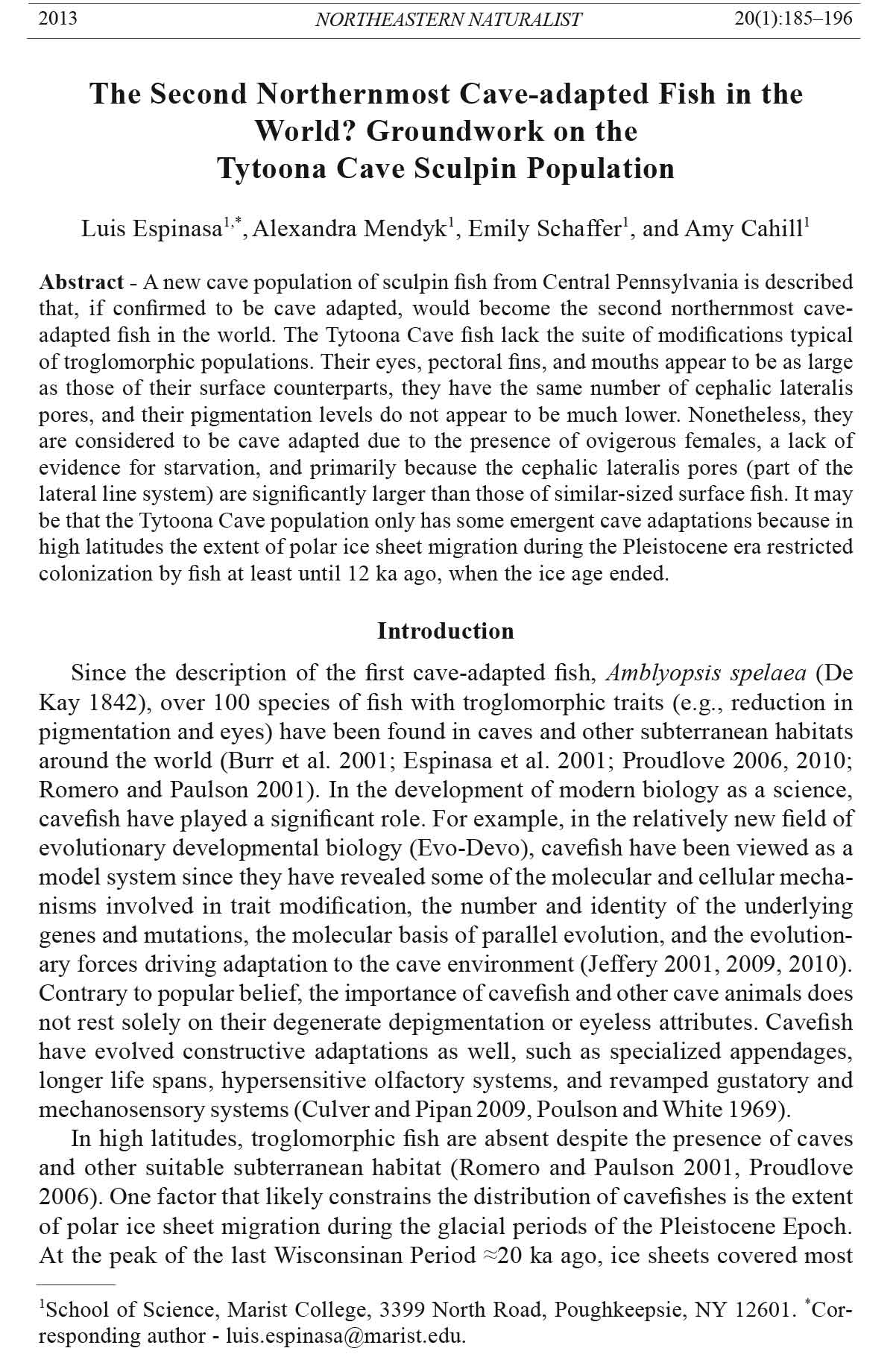 Luis Espinasa1,*, Alexandra Mendyk1, Emily Schaffer1, and Amy Cahill1