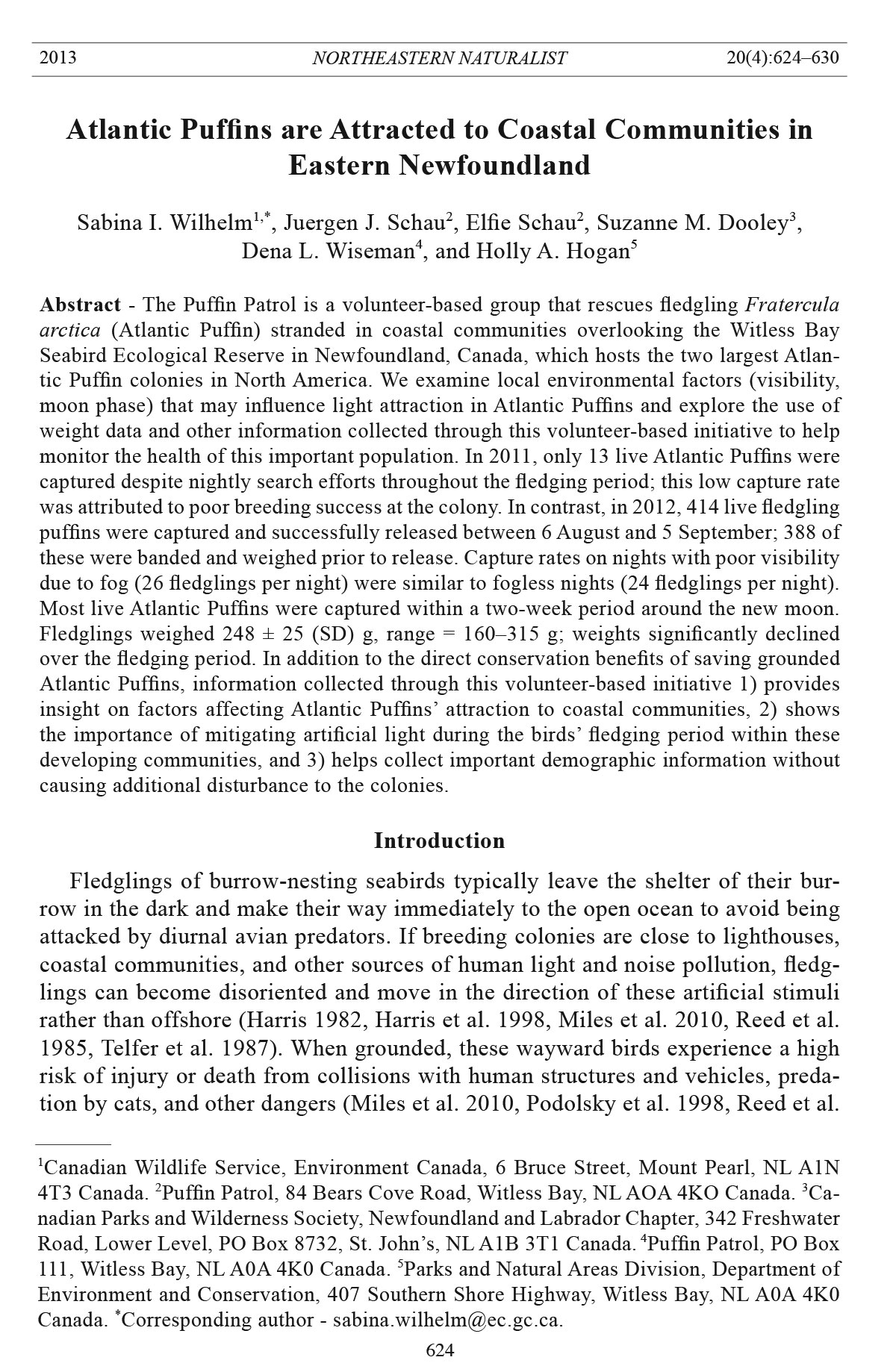 4T3 Canada. 2Puffin Patrol, 84 Bears Cove Road, Witless Bay, NL AOA 4KO Canada. 3Canadian
