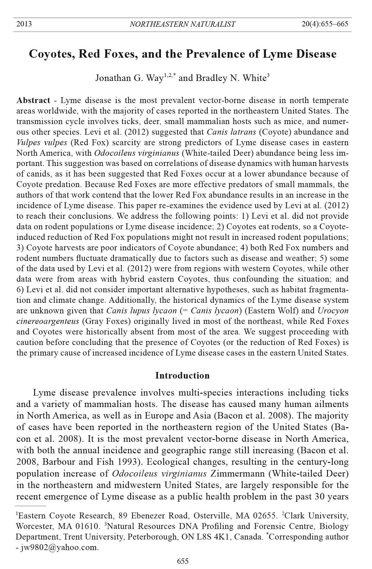 Coyotes, Red Foxes, and the Prevalence of Lyme Disease