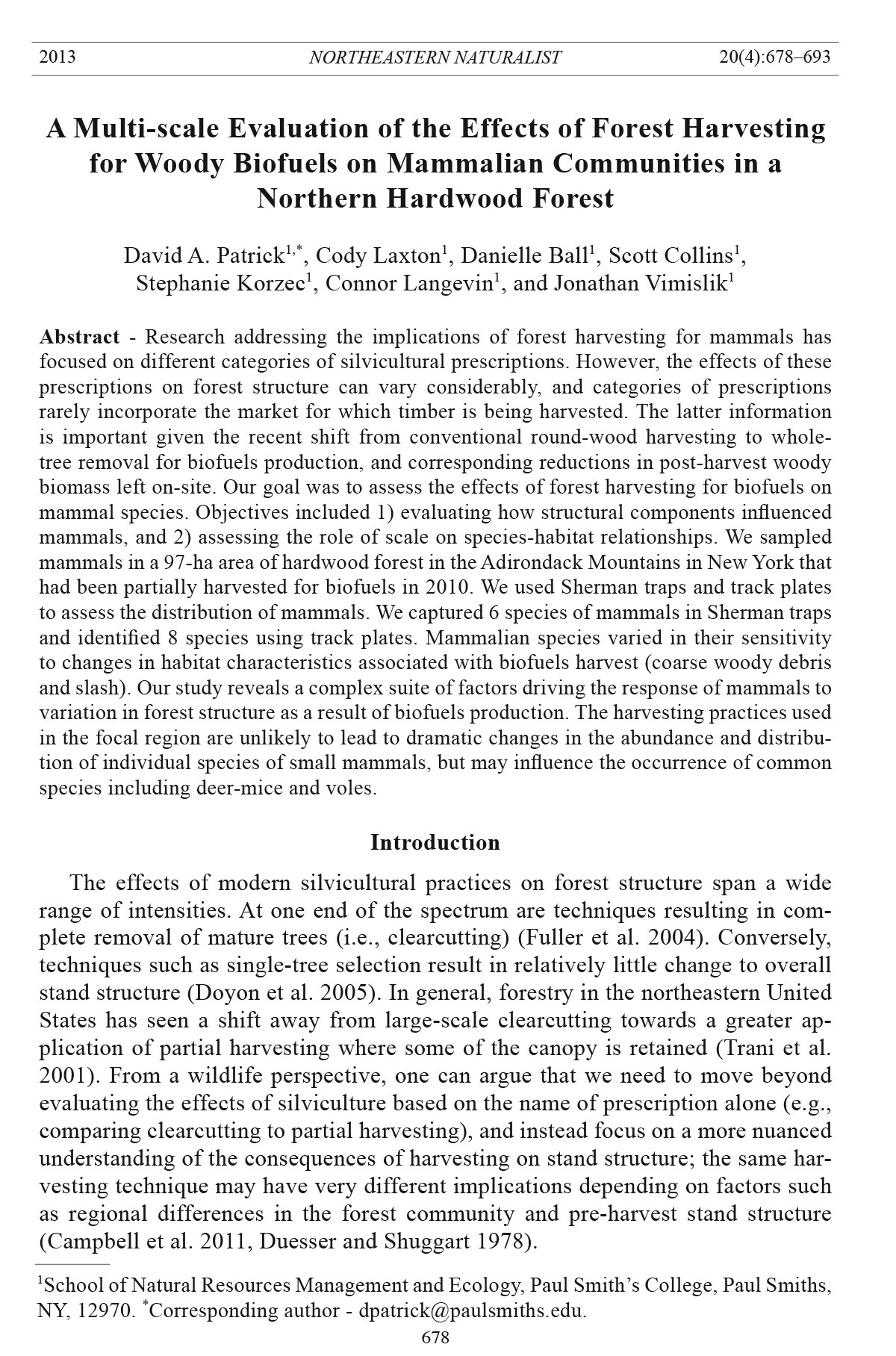 Fuller, A.K., D.J. Harrison, and H. J. Lachowski. 2004. Stand-scale effects of partial harvesting
