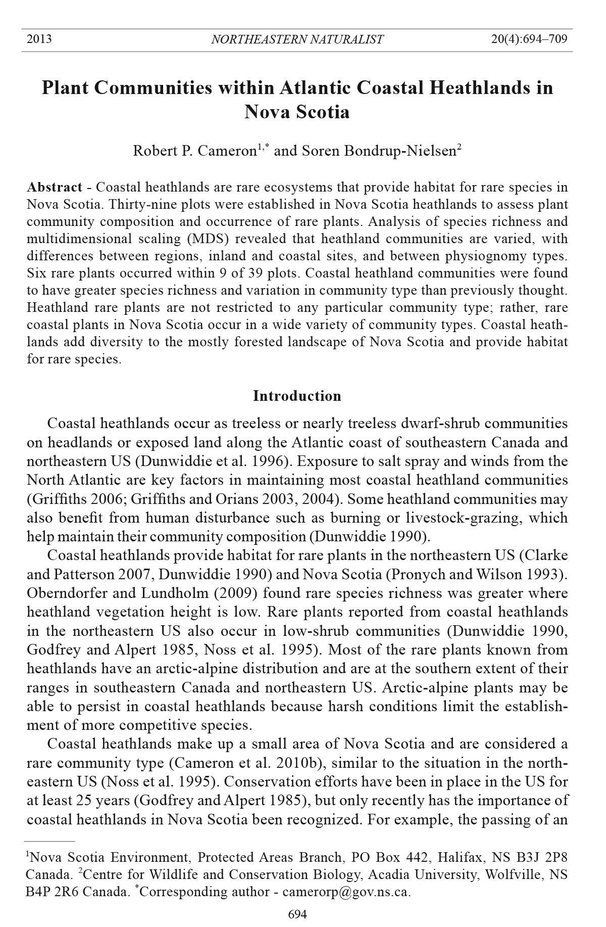 coastal heathlands in Nova Scotia been recognized. For example, the passing of an