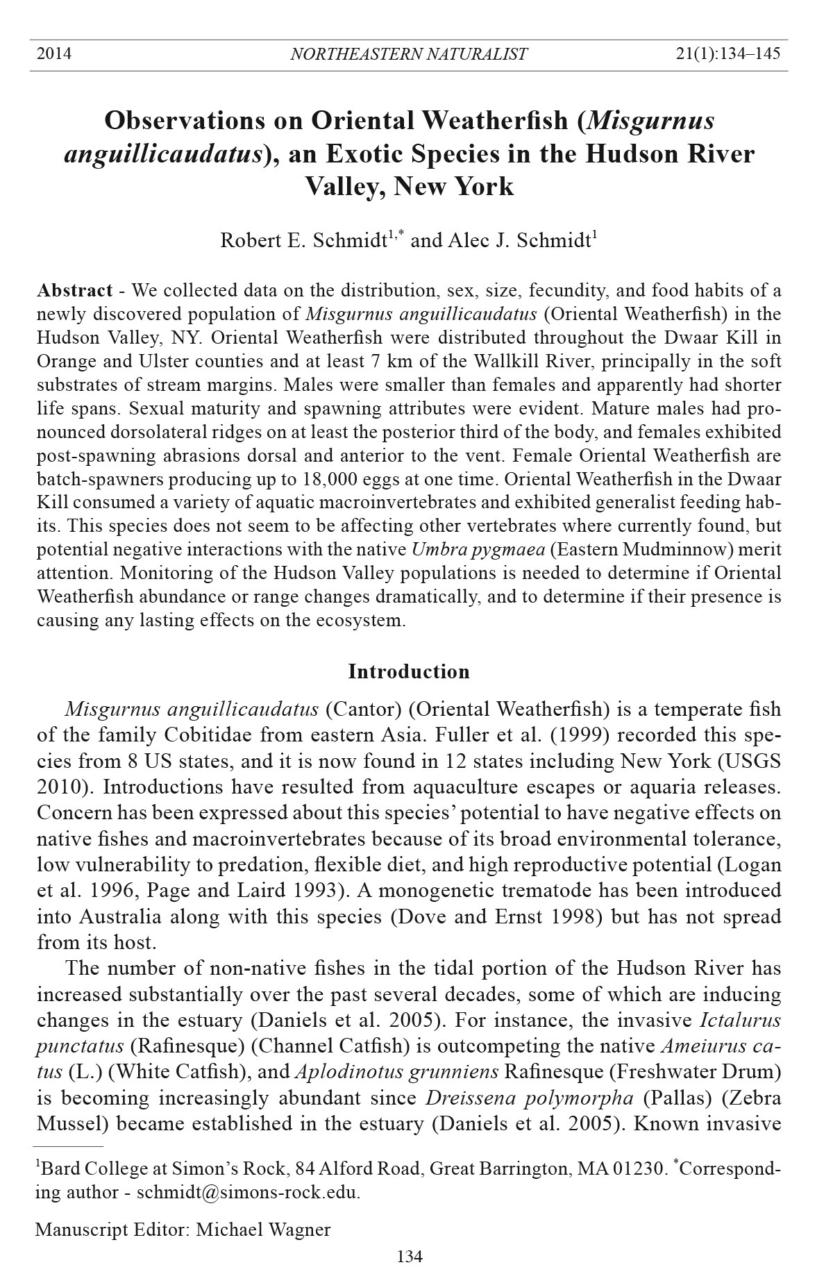 Northeastern Naturalist, Volume 21, Issue 1 (2014): 134–145