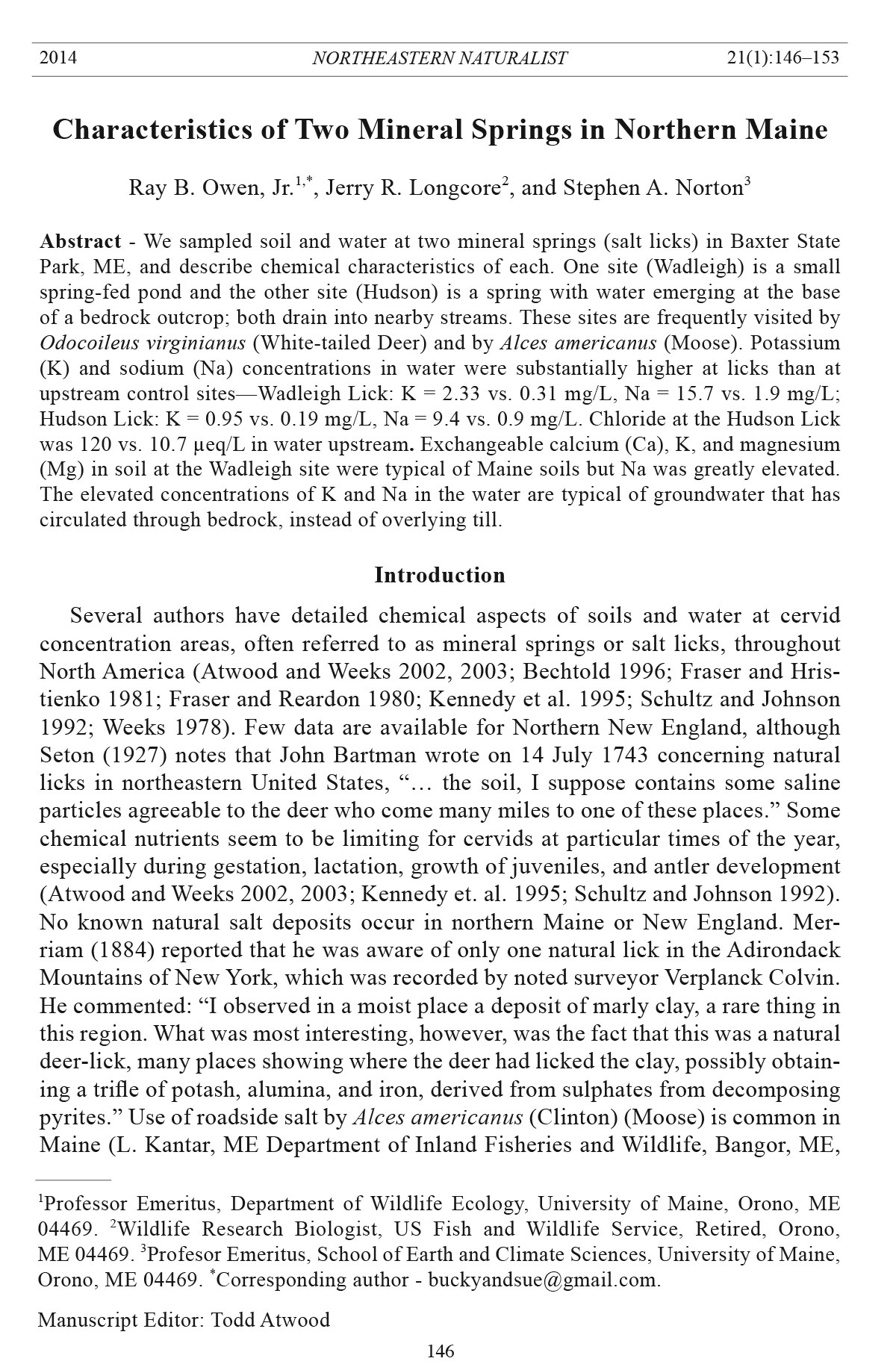 article, we describe chemical characteristics of two spring-fed sites used by Odocoileus