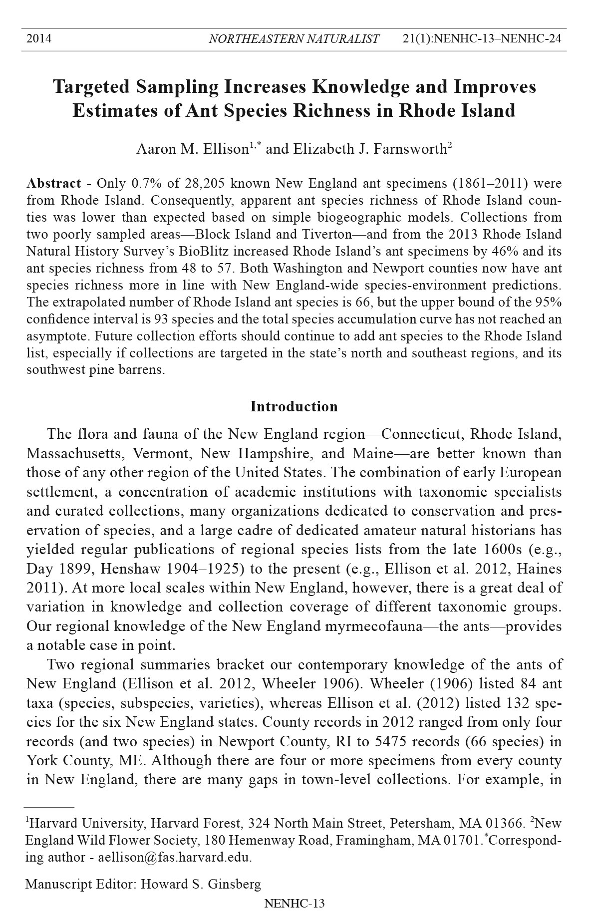 Ellison, A.M. 2012. The ants of Nantucket: Unexpectedly high biodiversity in an anthropogenic