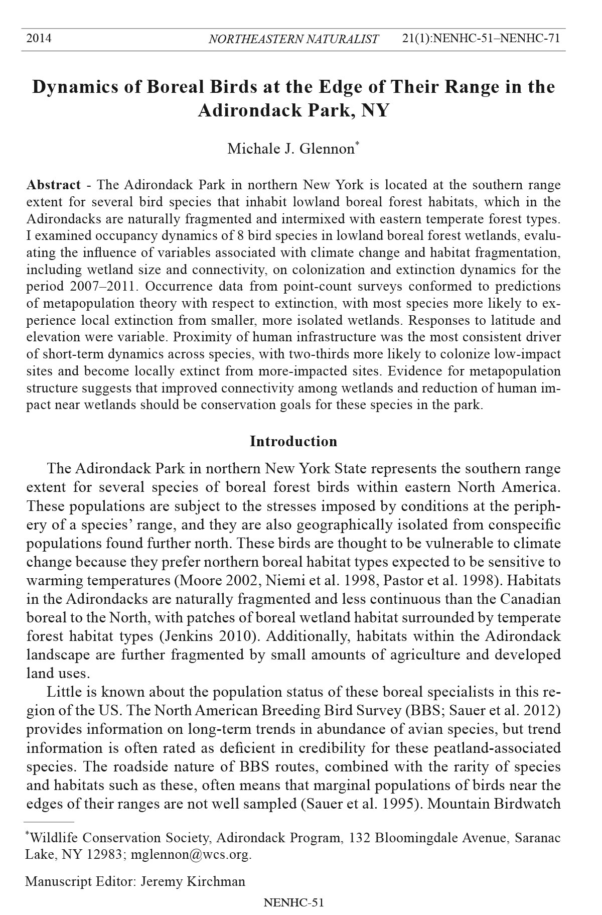 2014 NORTHEASTERN NATURALIST 21(1):NENHC-51–NENHC-71