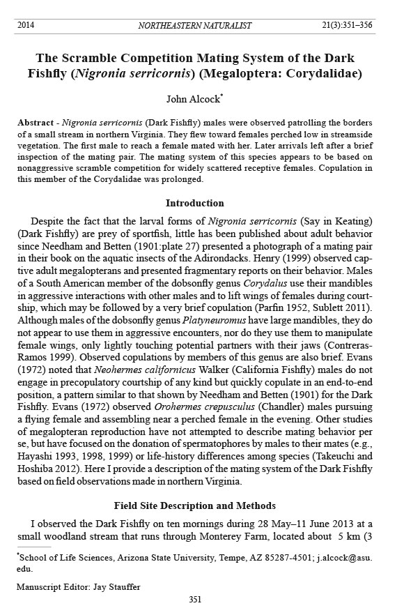 papers on the mating behavior of megalopterans.