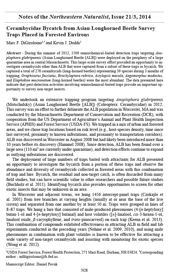 We identified a total of 278 cerambycids representing 39 species from ALB trapping