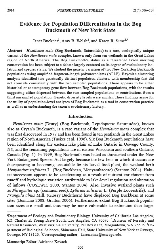 genetic study of Bog Buckmoth to assess genetic variation between two Oswego