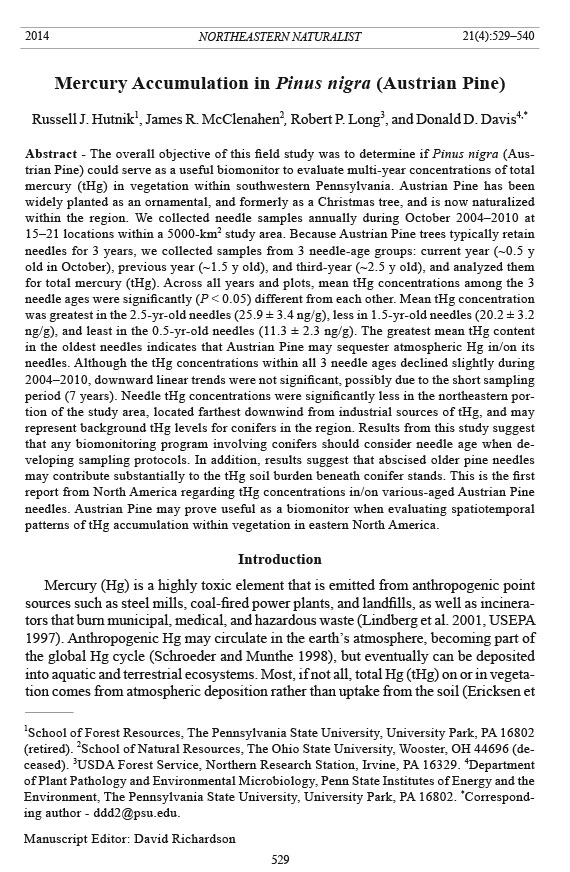 in the oldest needles indicates that Austrian Pine may sequester atmospheric Hg in/on its